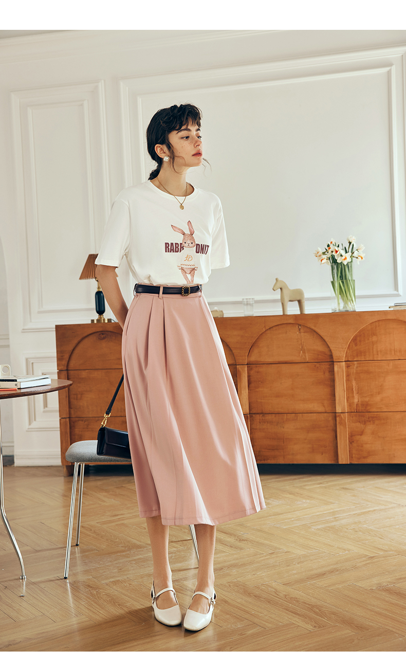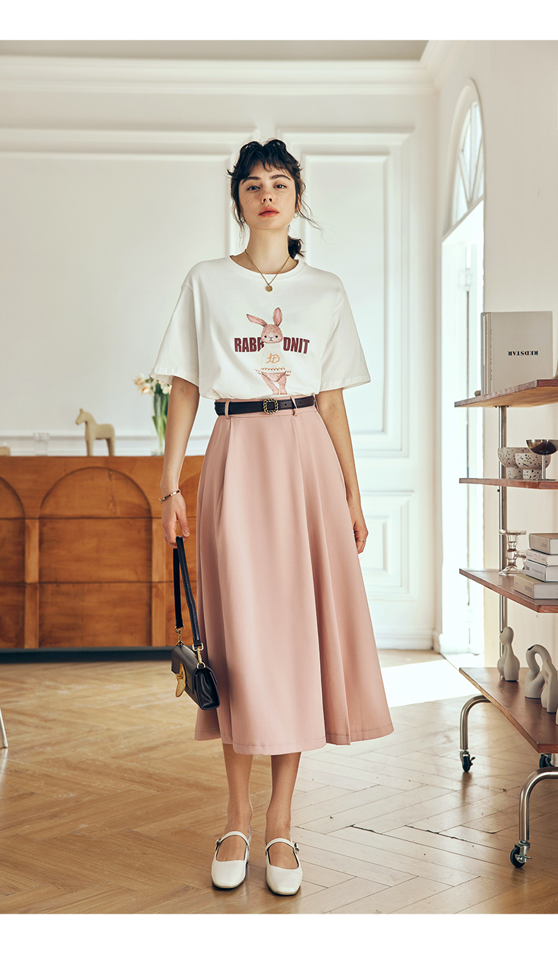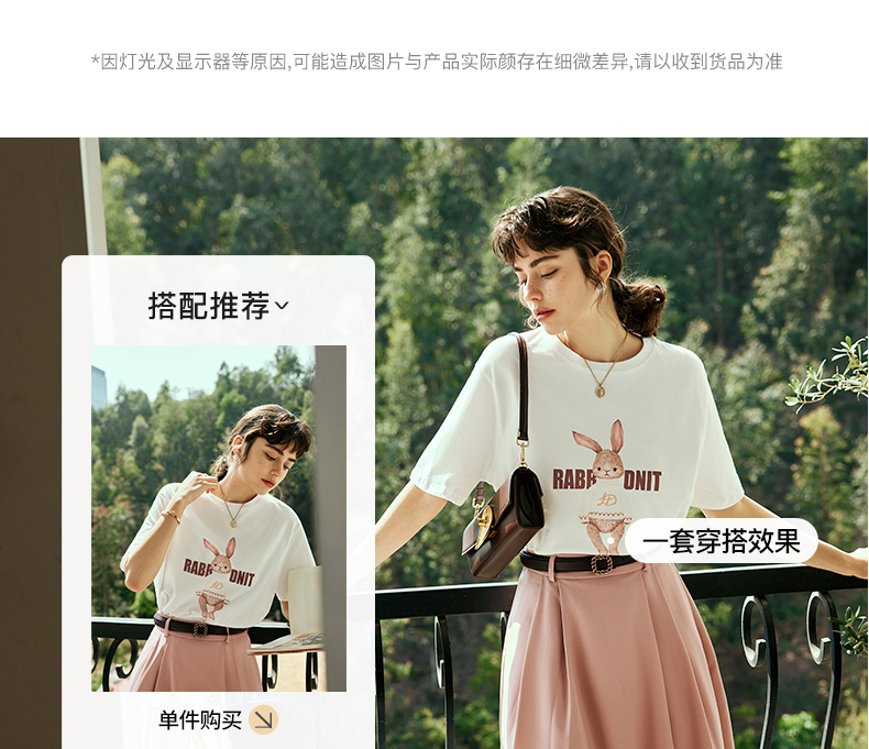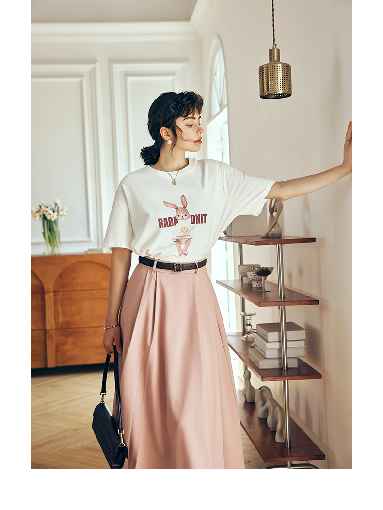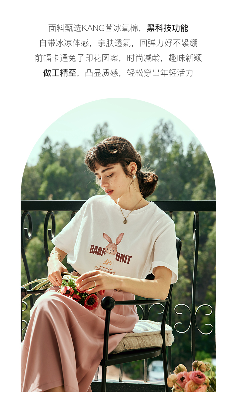 OLrain欧芮儿法式米白色短袖T恤女夏季2023新款时尚卡通印花上衣