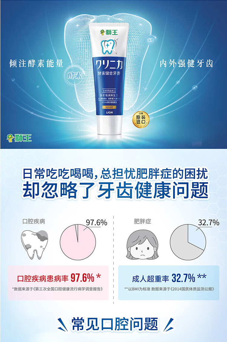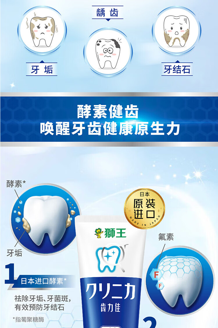 【分仓直发包邮】狮王齿力佳酵素健齿牙膏组合130g*3(三种口味各一支)