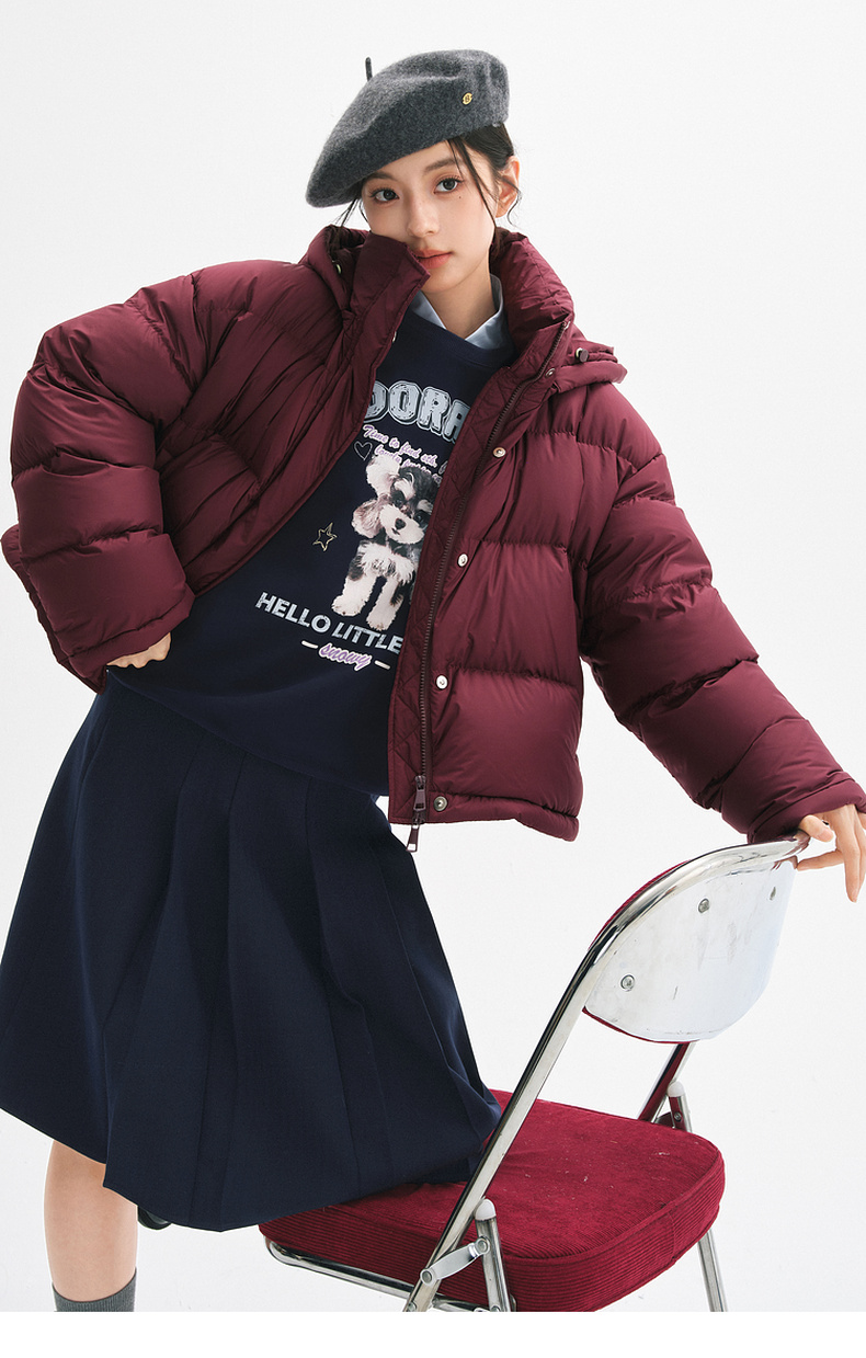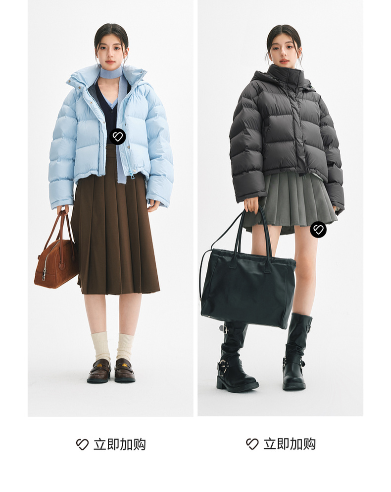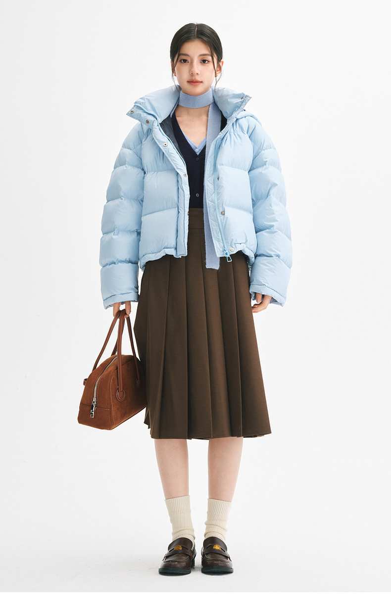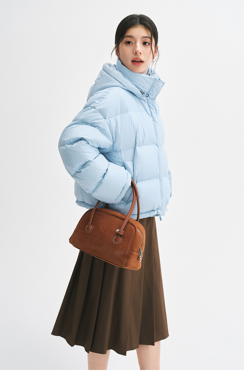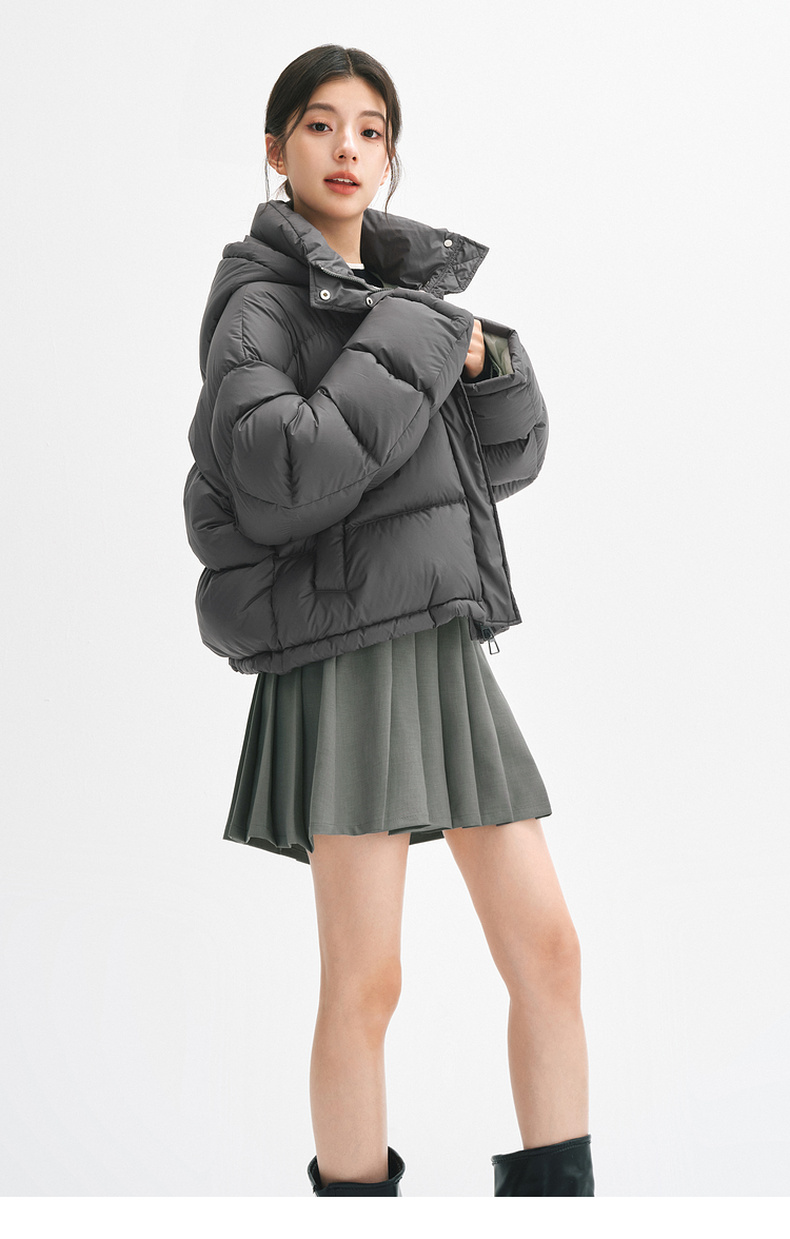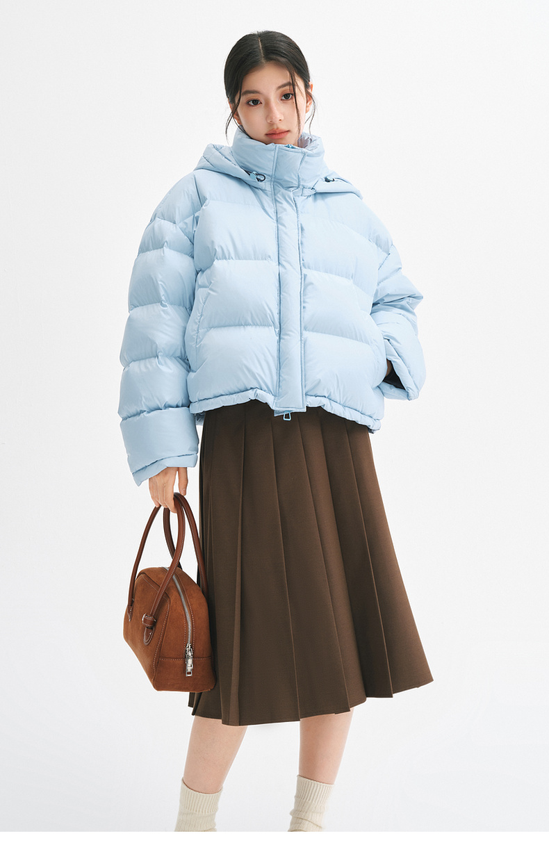 【严选】【90鸭绒】诗凡黎羽绒服24年冬新款高领连帽面包服小个子气质外套SFA180021