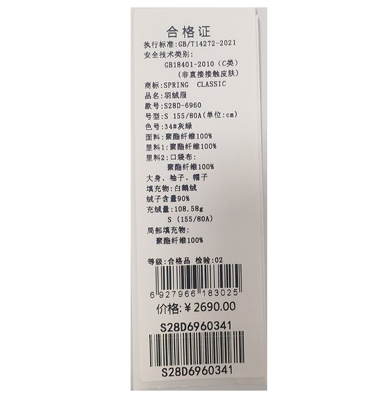 西贝伦羽绒服S28D6960