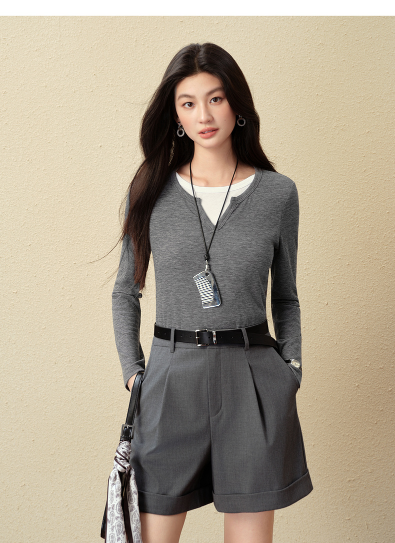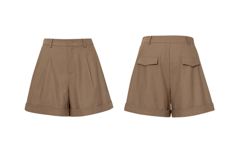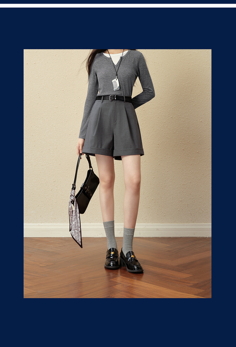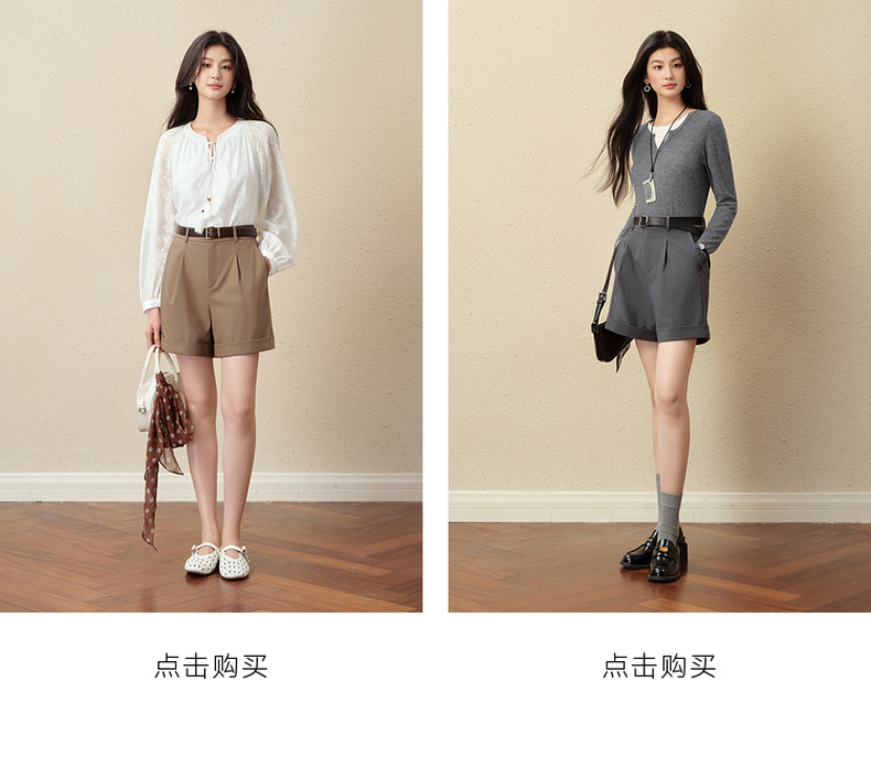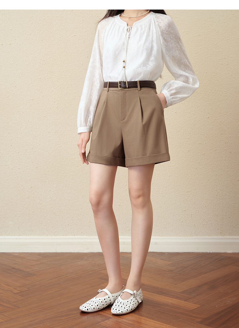 【严选】诗凡黎翻边A字宽松休闲裤2025秋新款高腰显瘦百搭阔腿西装短裤女7G8151141