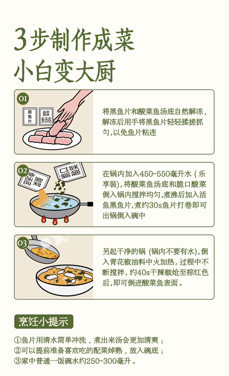 【双倍鱼片 叮叮酸菜鱼套餐】450g酸菜鱼3包+送250g黑鱼片3包