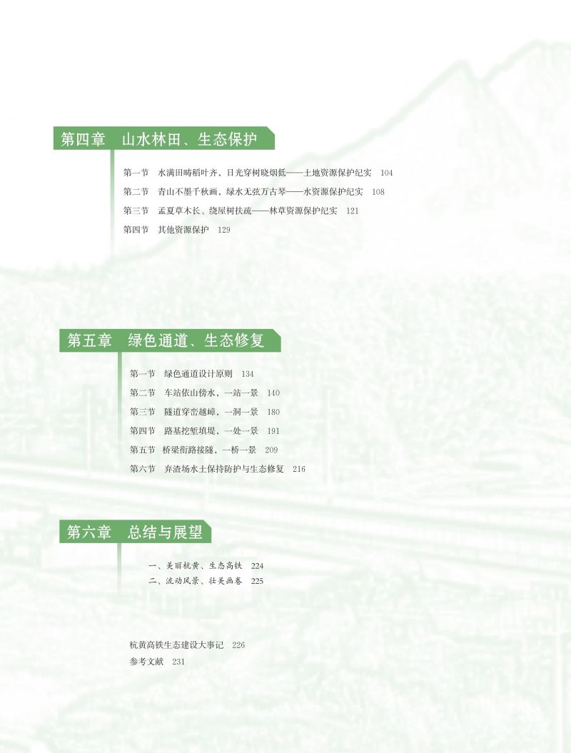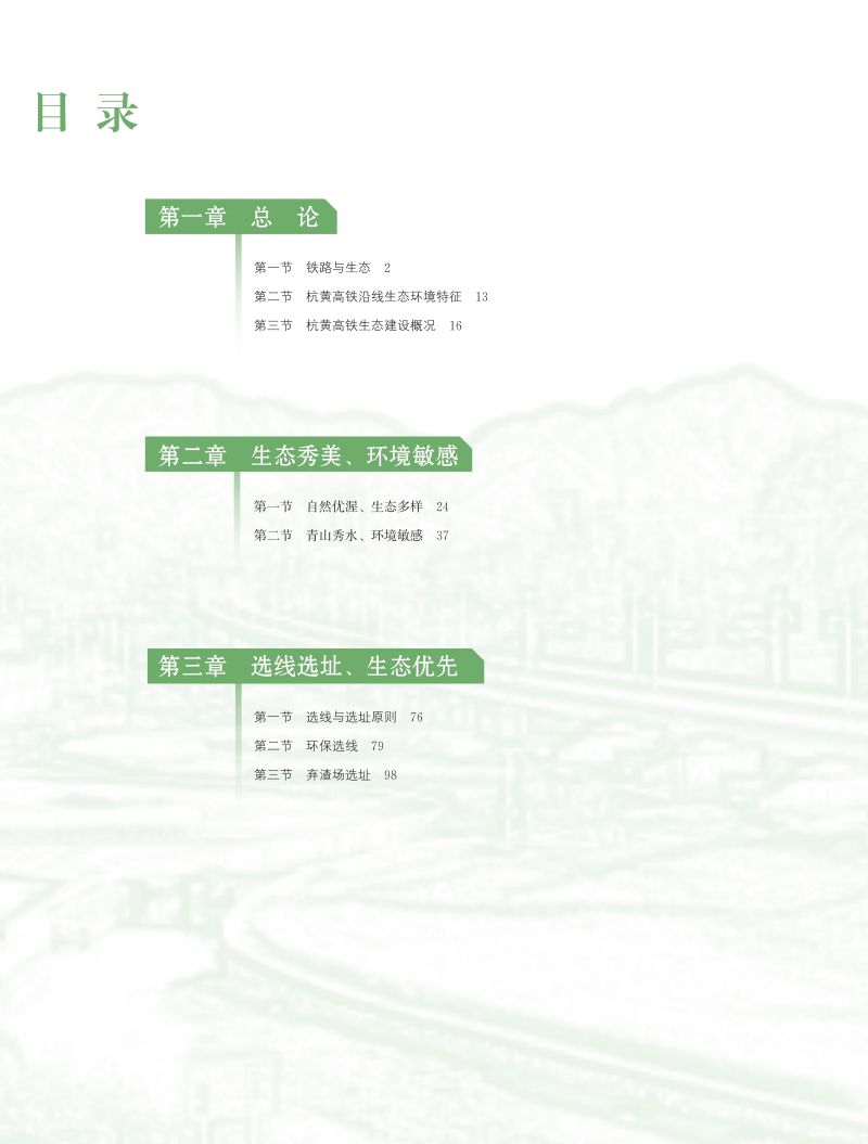 《生态杭黄》是 《 杭黄高铁 创新设计 丛书 》 之一,主要内容集中在三方面:一是如何实现杭黄高铁与沿线生态环境融合共生,尤其是经过环境敏感路段;二是杭黄高铁建设、运营中如何最大限度地保护沿线的山水林田湖;三是如何对杭黄高铁工程创面实施人工修复与自然恢复。按照“四季常绿、三季有花”的绿色设计理念,为实现“美丽杭黄、生态高铁”的生态建设目标,而进行的一系列创新成果。通过通俗易懂的语言、图文并茂的形式,为广大读者走进高铁生态保护导航