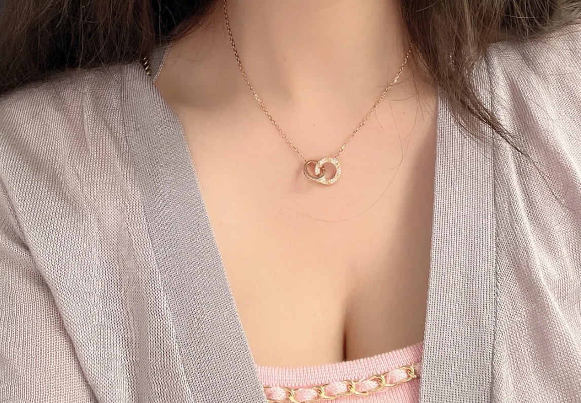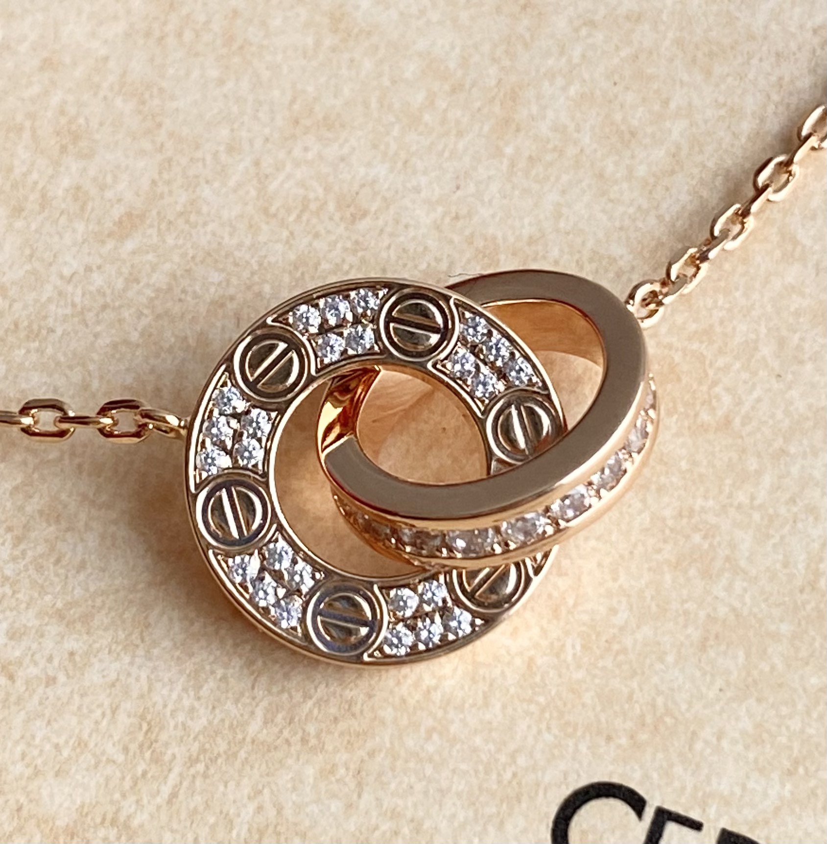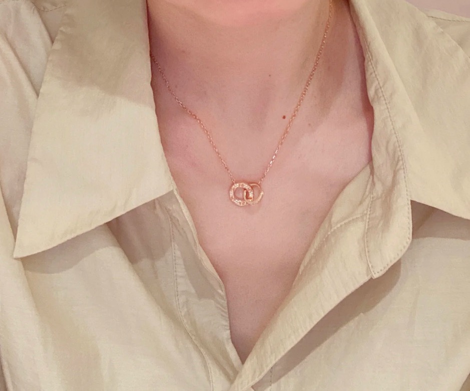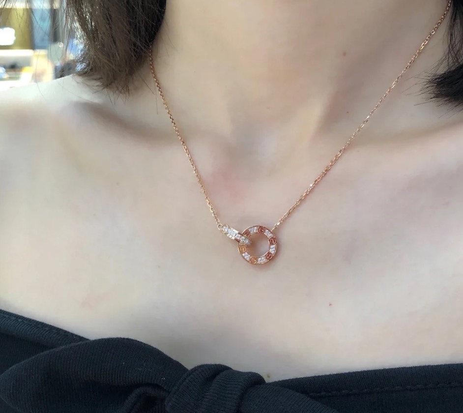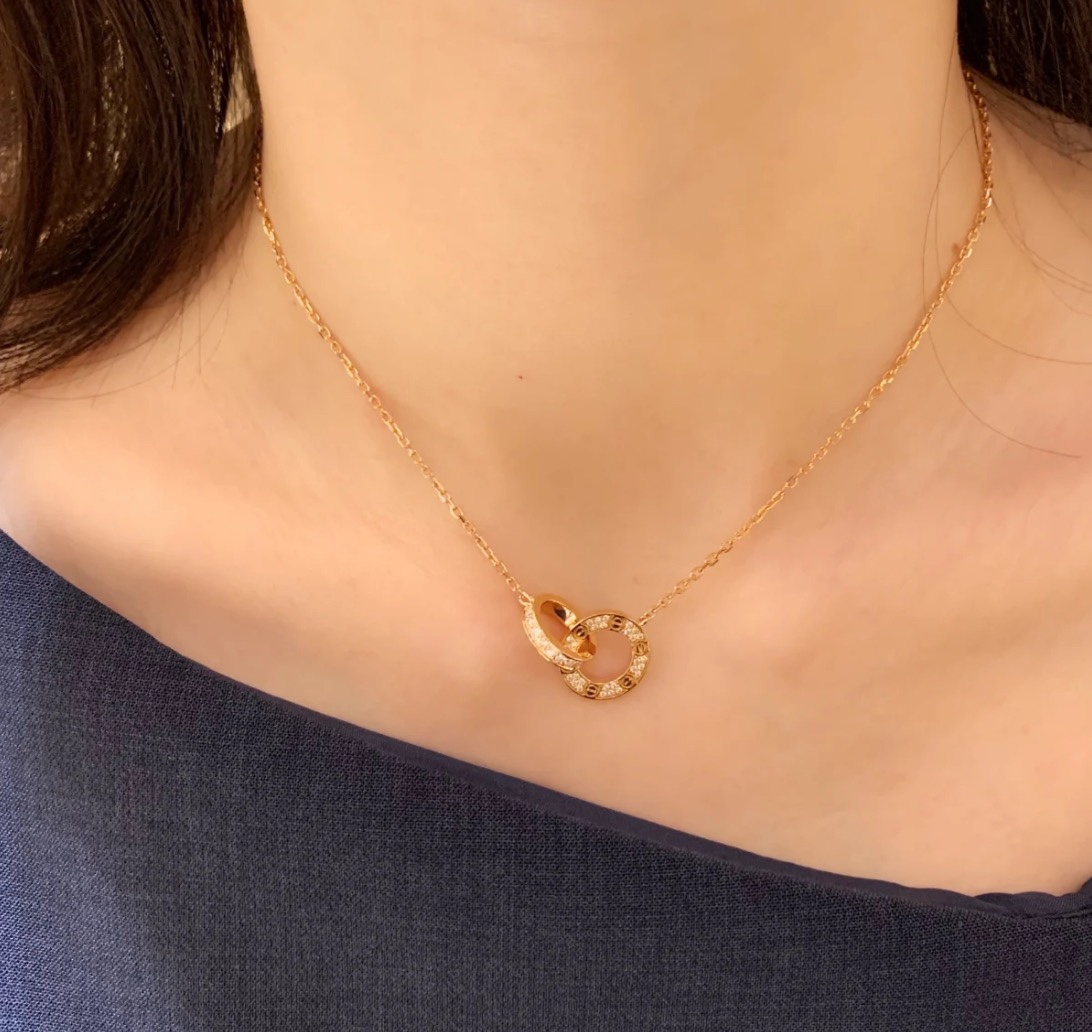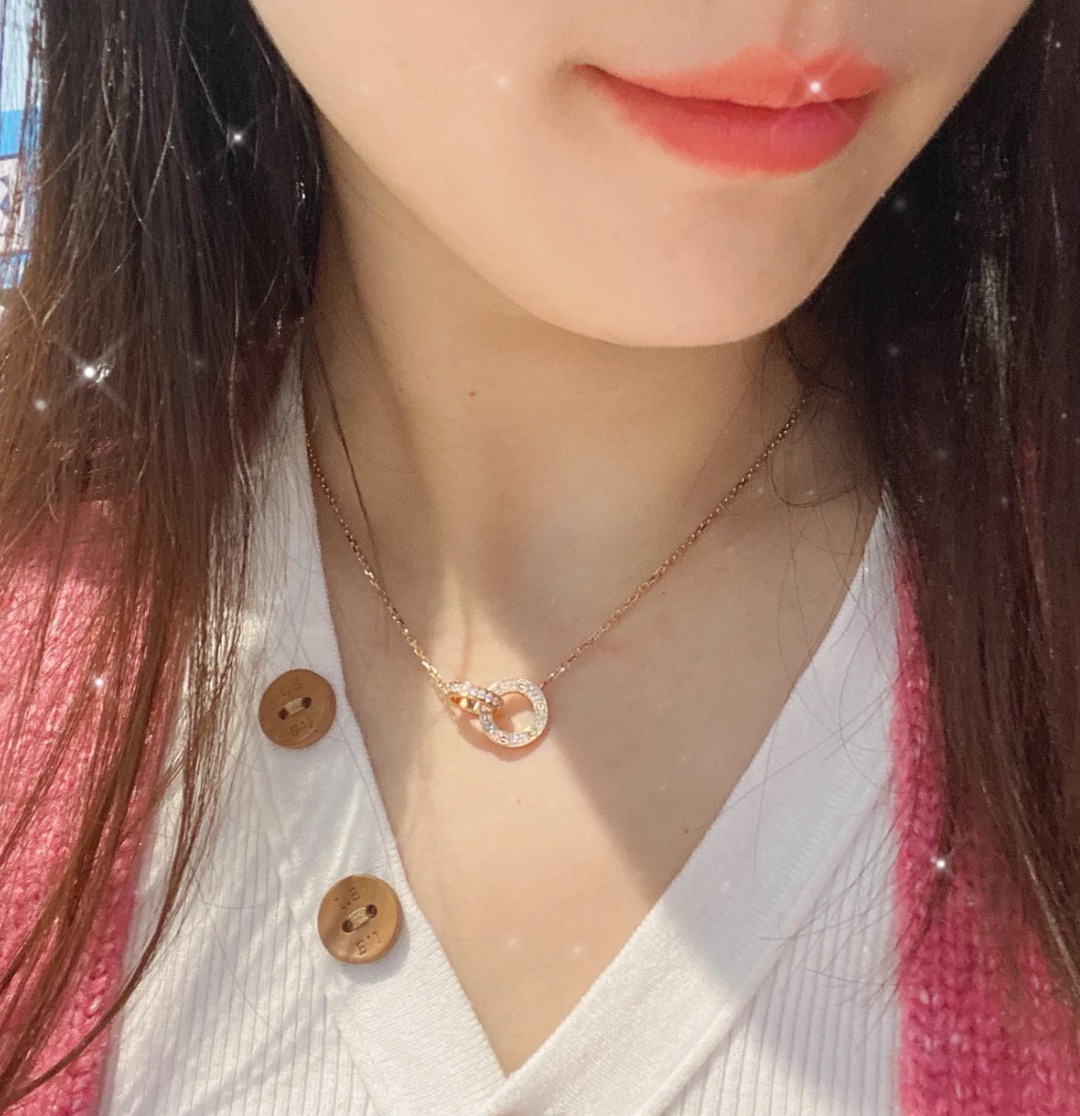 独家对版CNC数控精雕 精工高定 卡地亚Cartier love双环项链 环环相扣、寓意爱情永不分离!随意搭配、超级百搭!