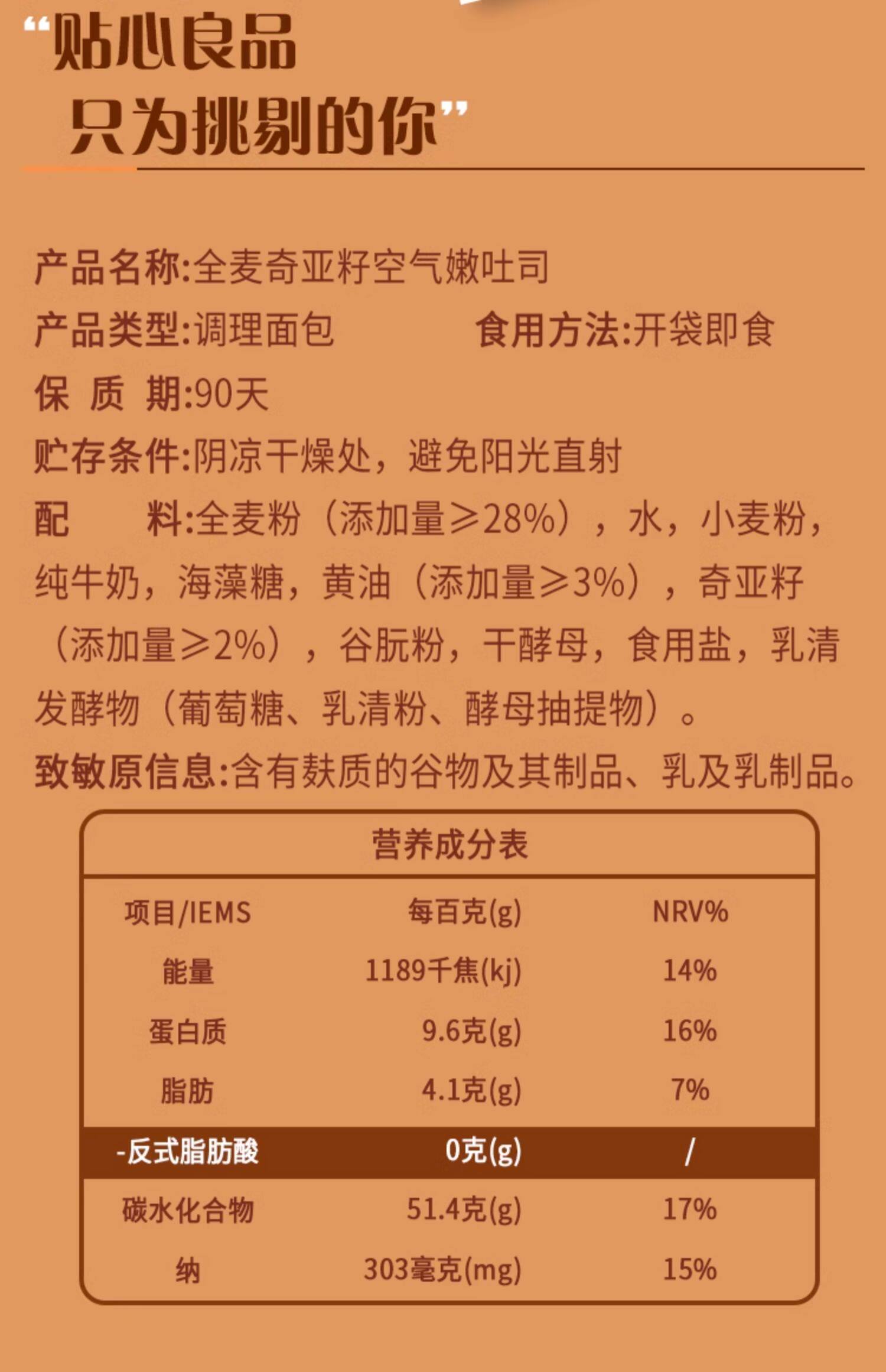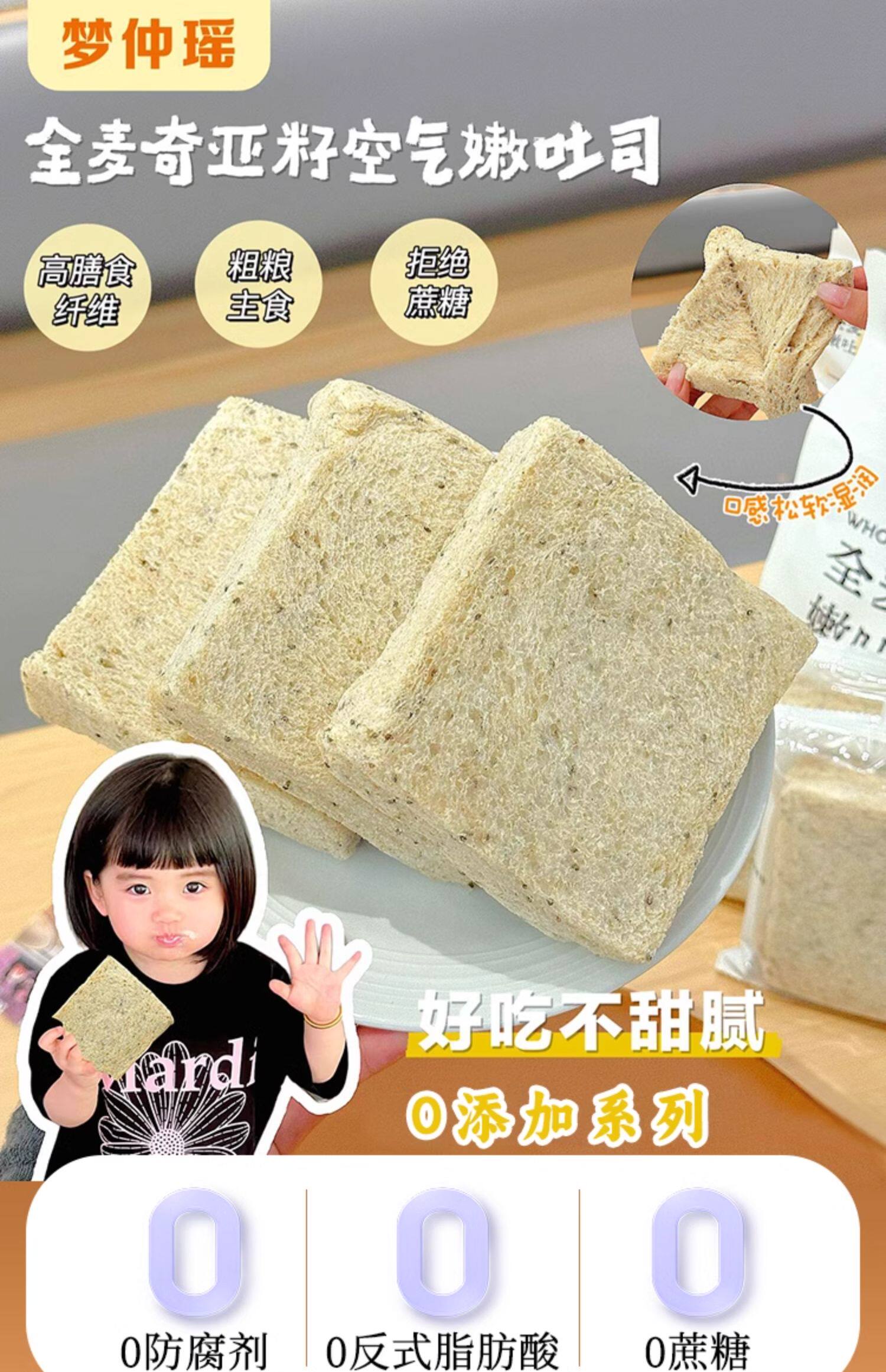 梦仲瑶 全麦奇亚籽空气嫩吐司420g