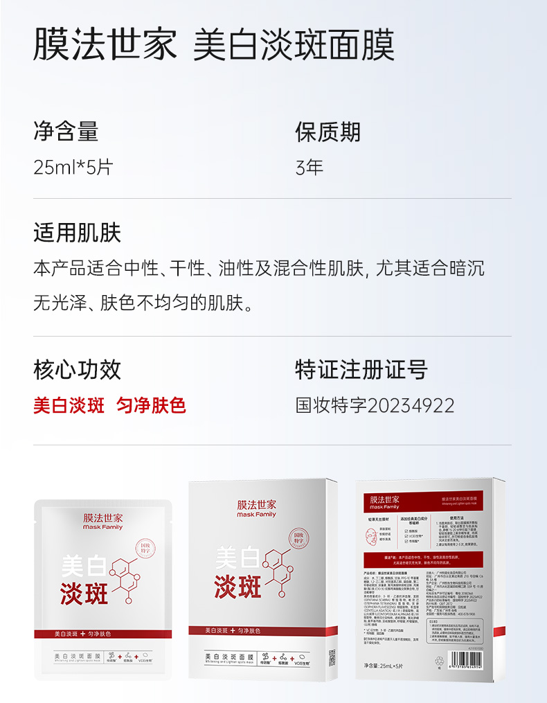 【美白推荐|¥49/10片】膜法世家美白淡斑面膜5片*2盒