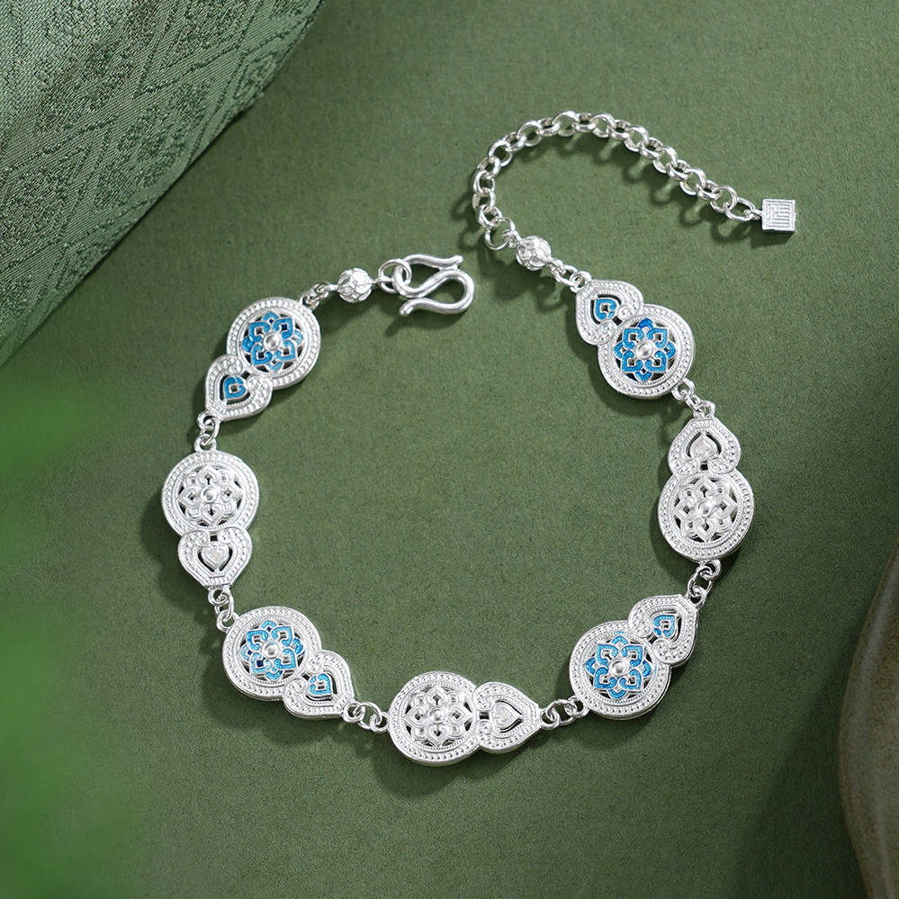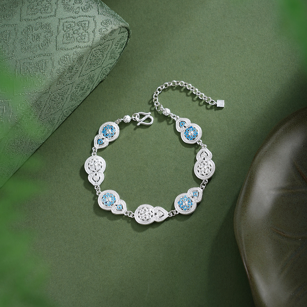 子佩集【福禄宝相】银S990手链【QFSL026】原创作品花丝珐琅彩宝相葫芦2602