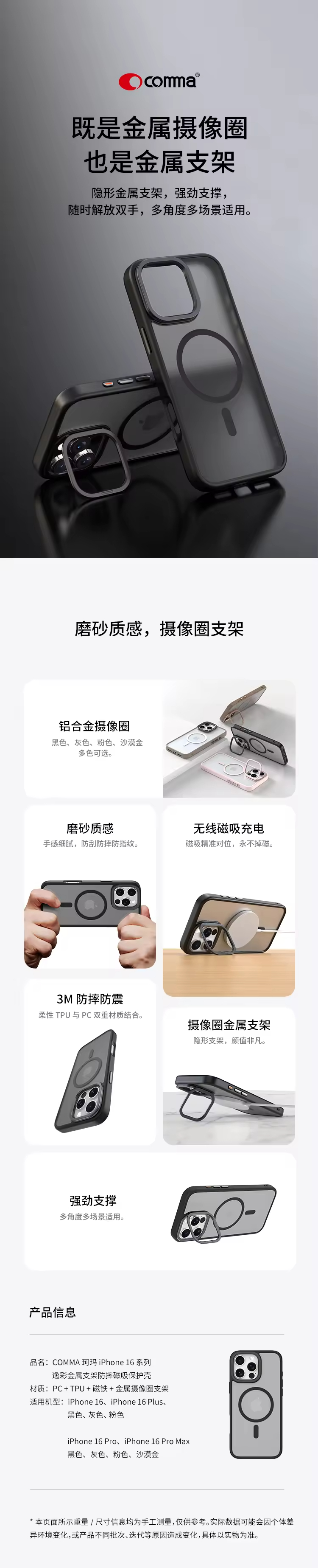 COMMA珂玛 iPhone 16 系列 逸彩金属支架防摔磁吸保护壳