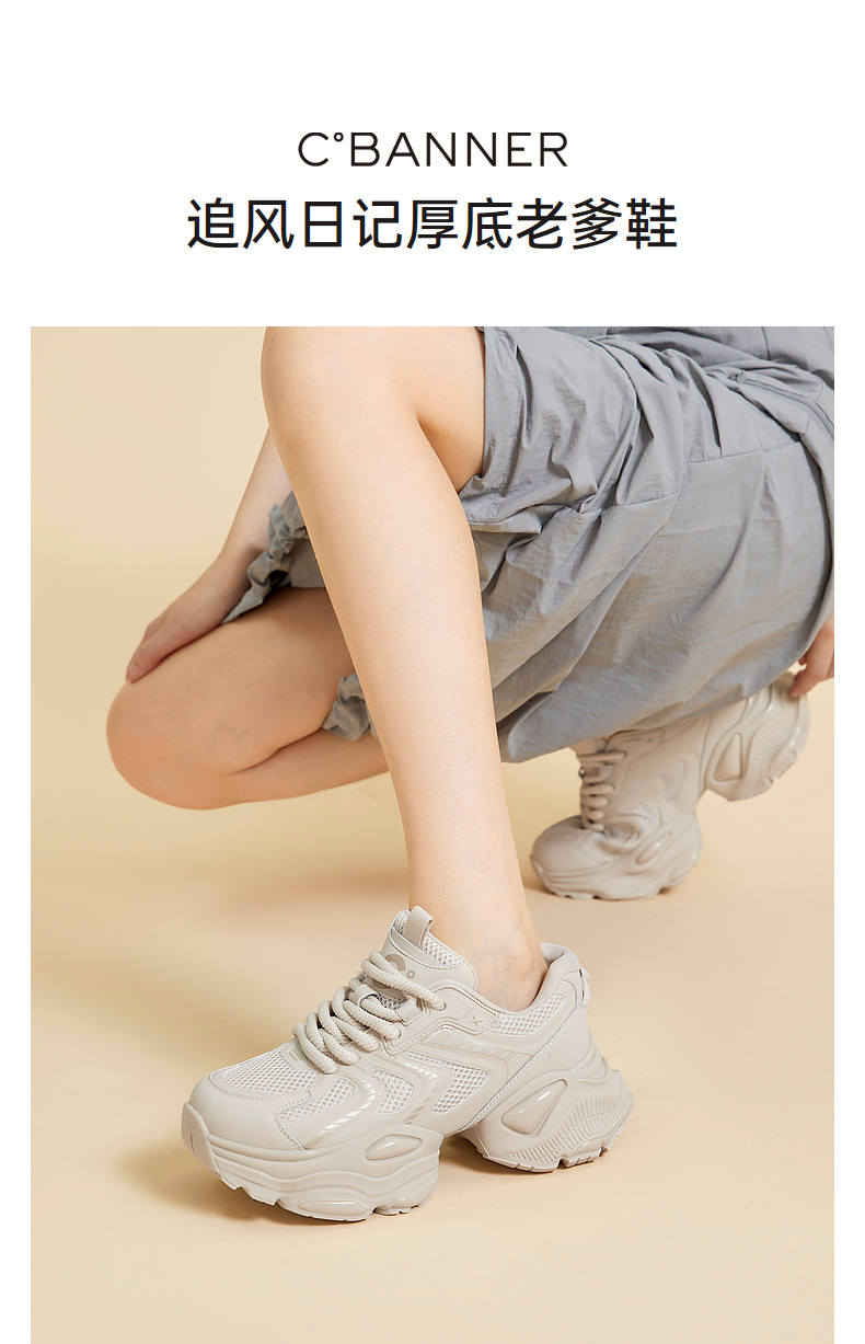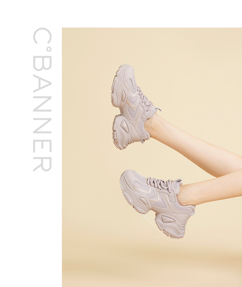 千百度厚底老爹鞋女款春夏增高网面机能鞋时尚运动休闲鞋A24301875