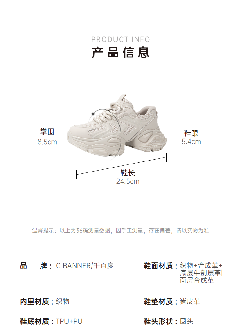 千百度厚底休闲板鞋女2026春季新款增高小白鞋时尚透气运动休闲鞋A26156171