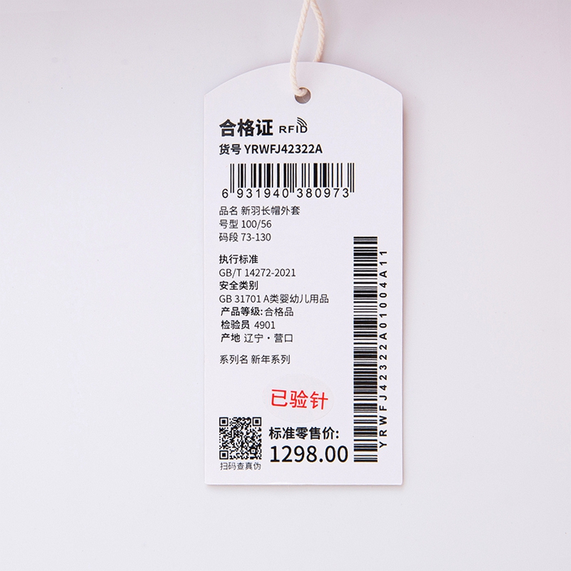 英氏儿童羽绒服男女宝白鹅绒连帽羽绒外套2022新年装YRWFJ42322A