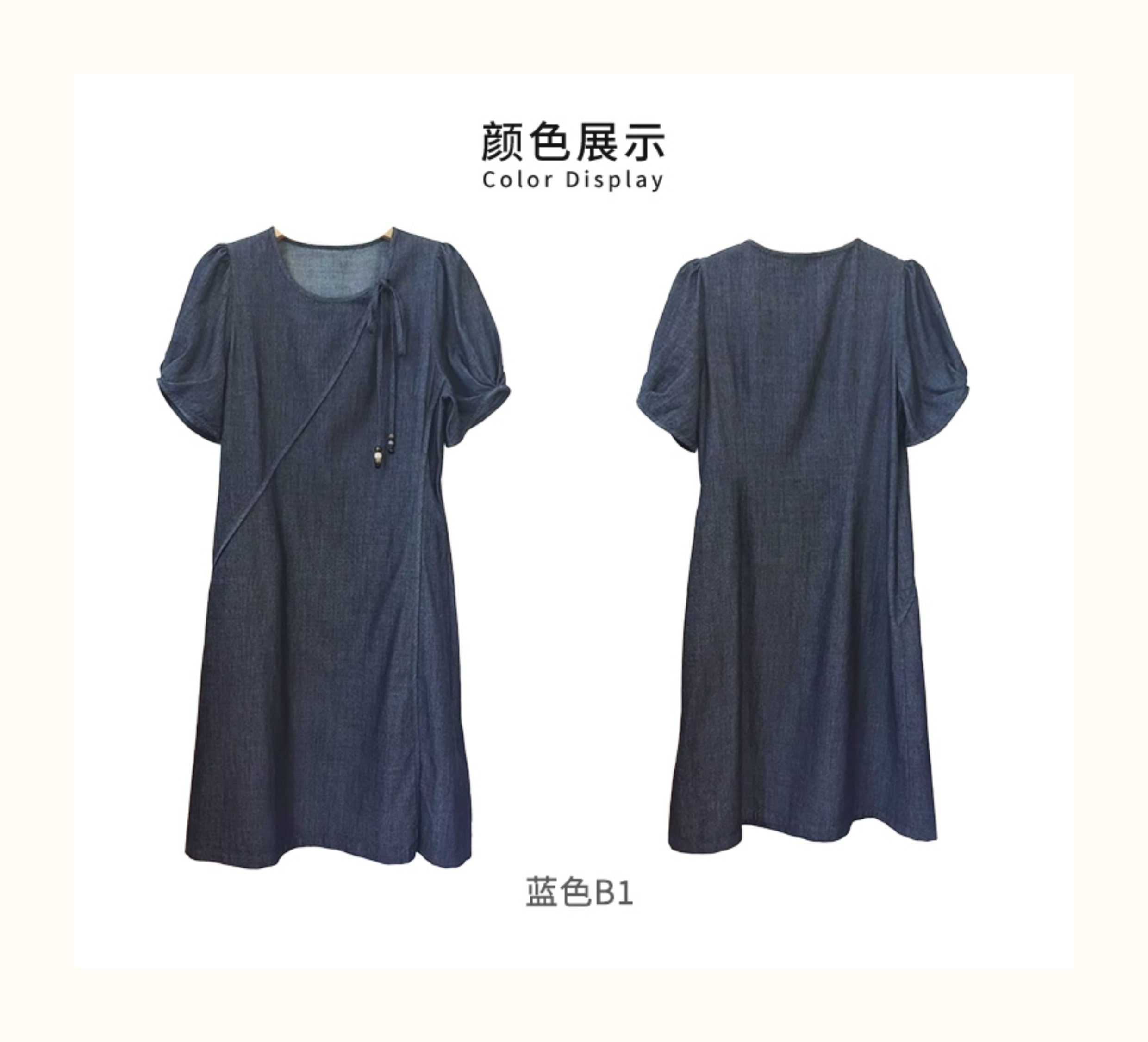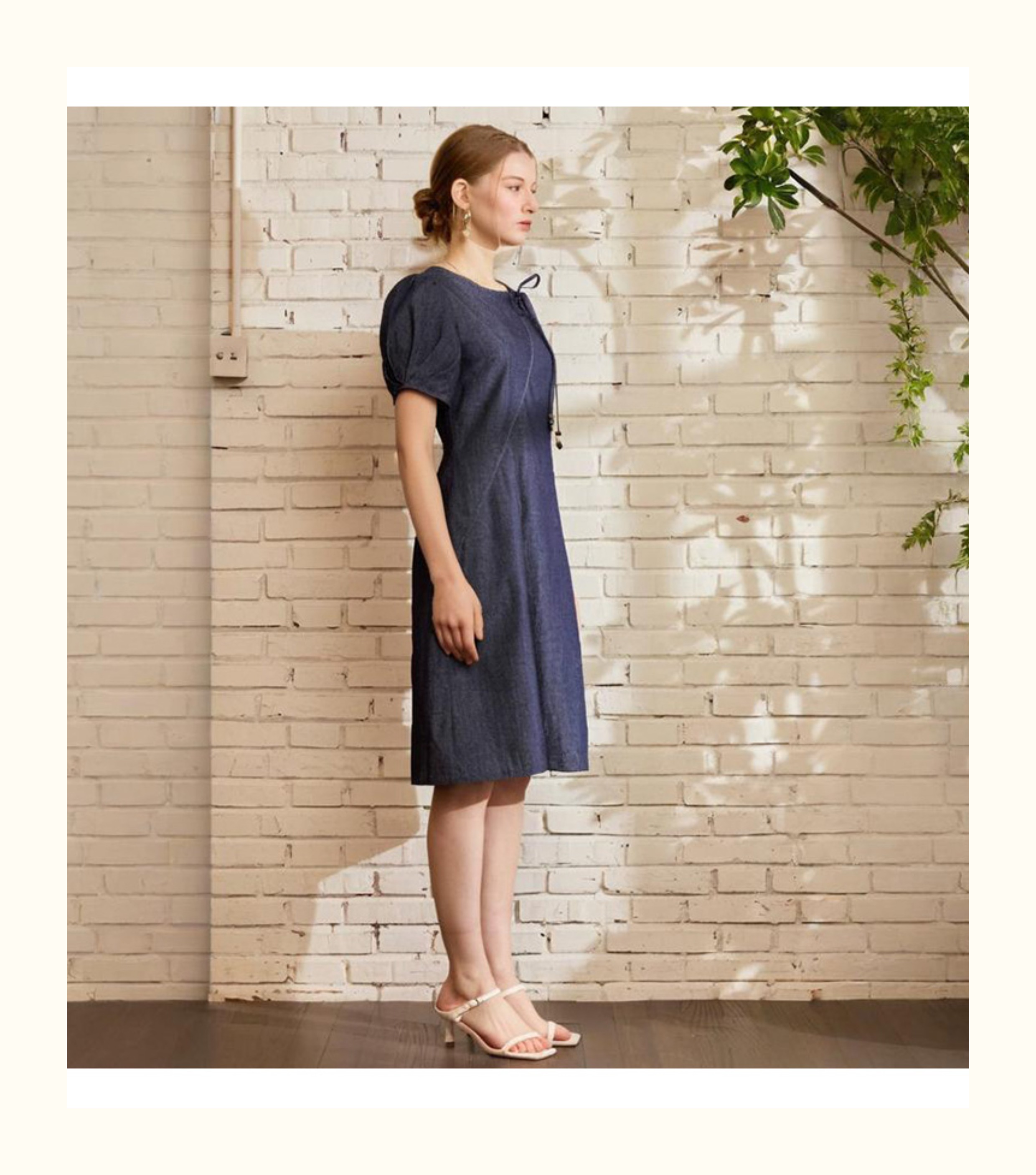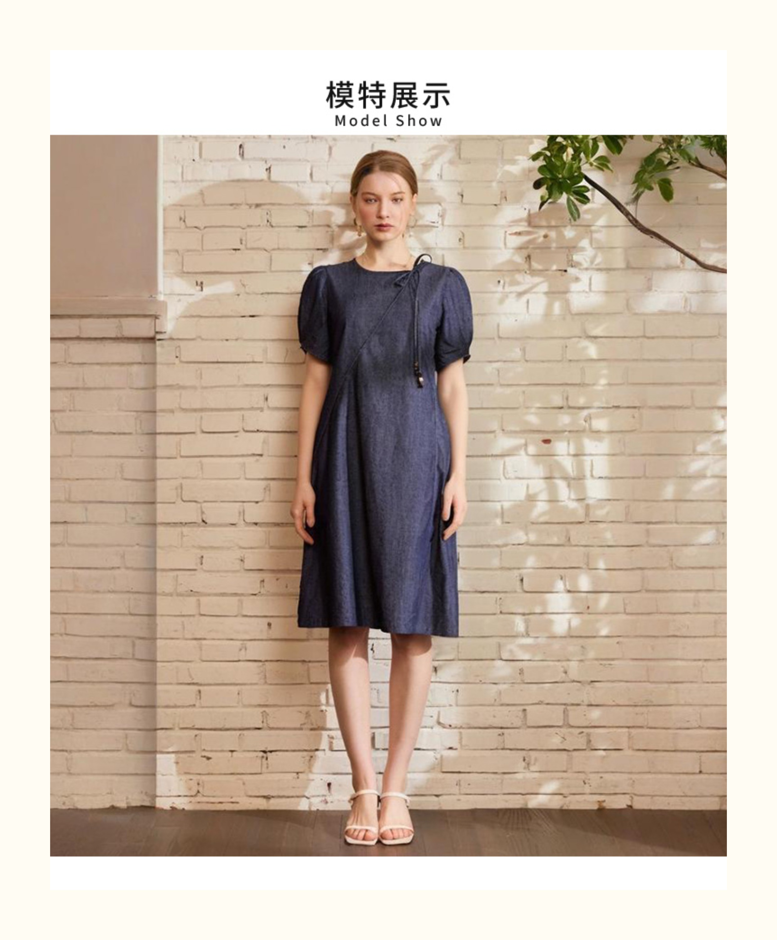 VIVIAN LIU V2534108 夏季新款时尚圆领系带泡泡短袖修身连衣裙