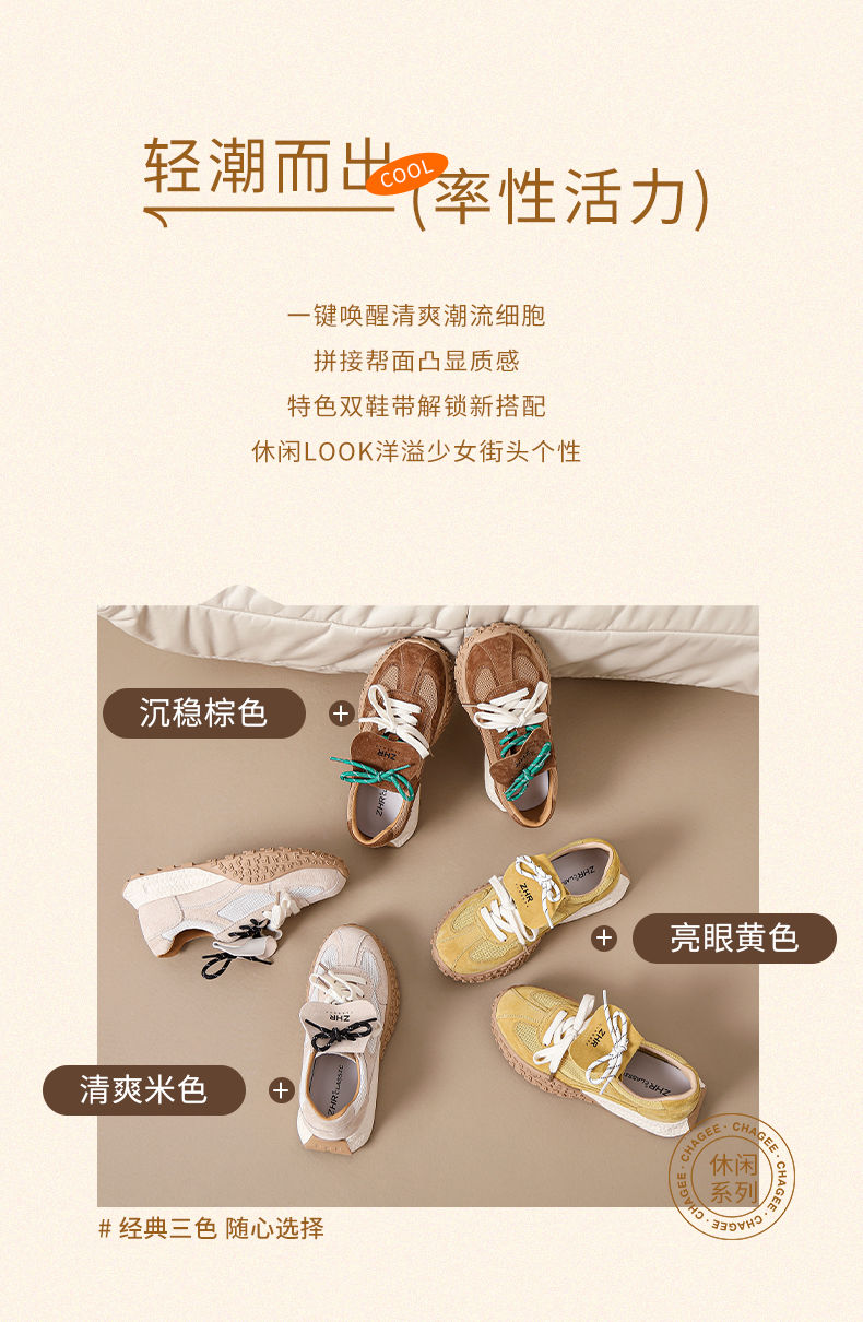 ZHR则则网布透气运动鞋厚底增高女鞋德训鞋2024秋季ins百搭休闲鞋