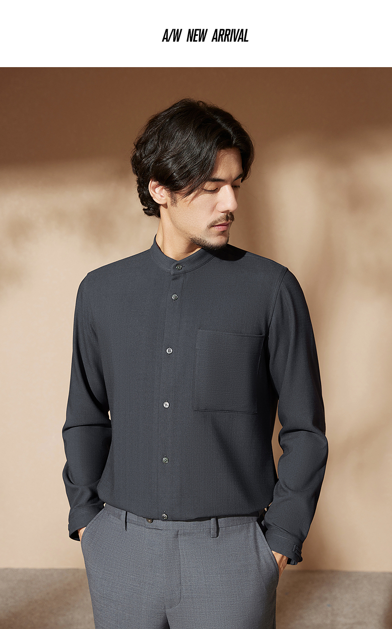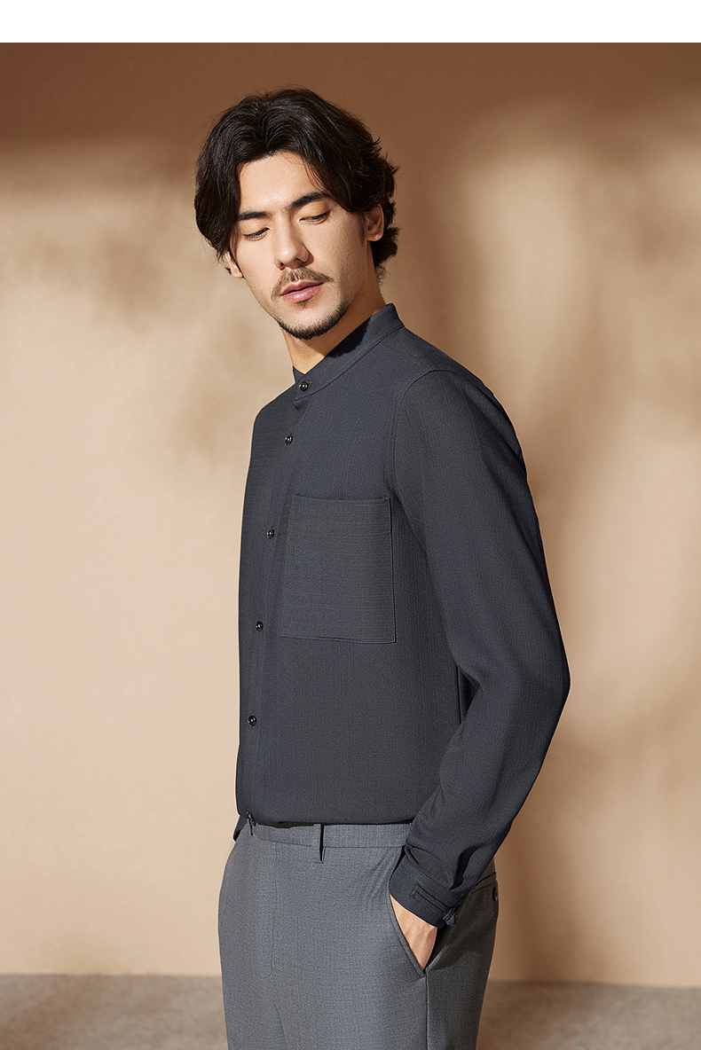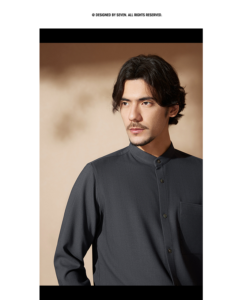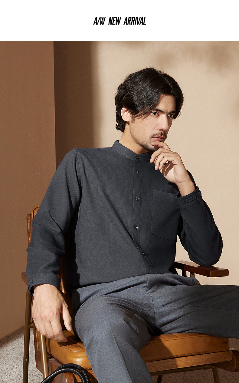 【中华立领】柒牌立领衬衫男2024春秋新款时尚休闲中国风长袖衬衣 127A70010