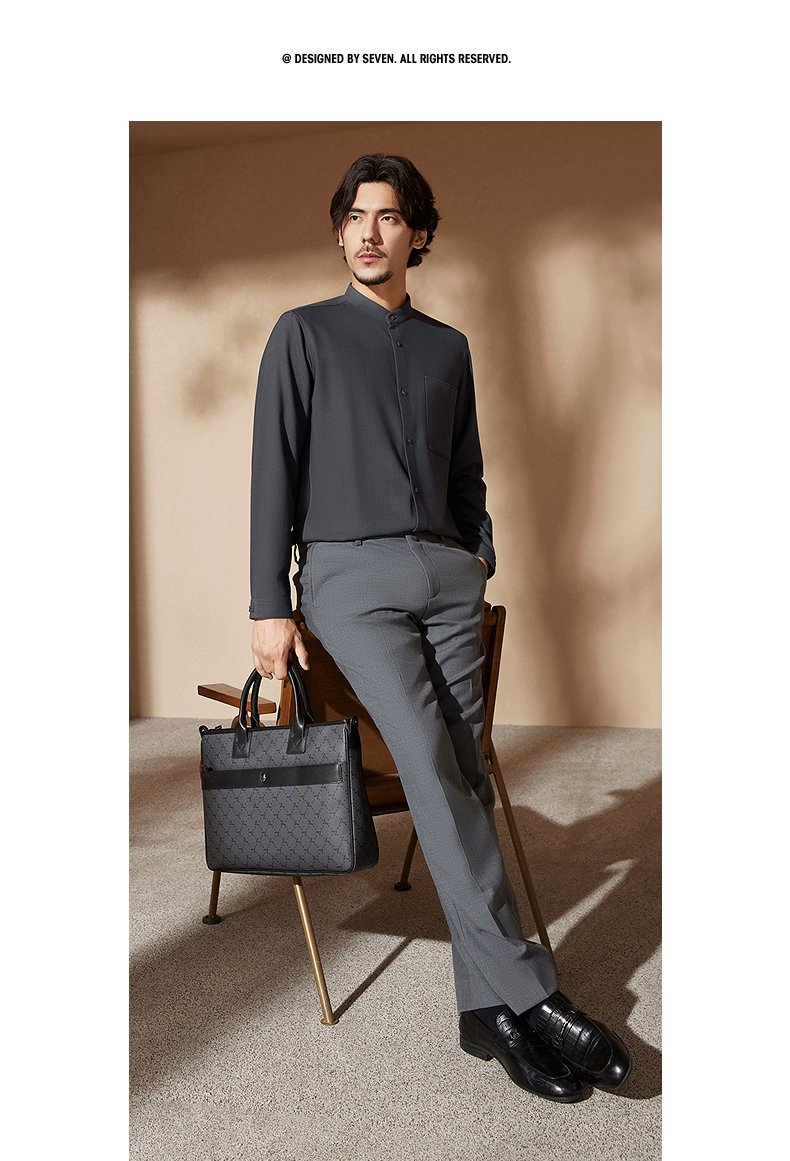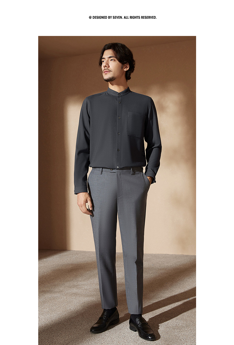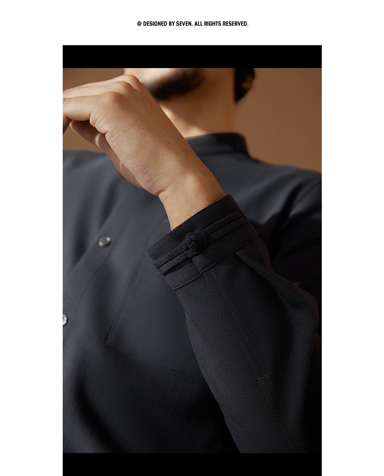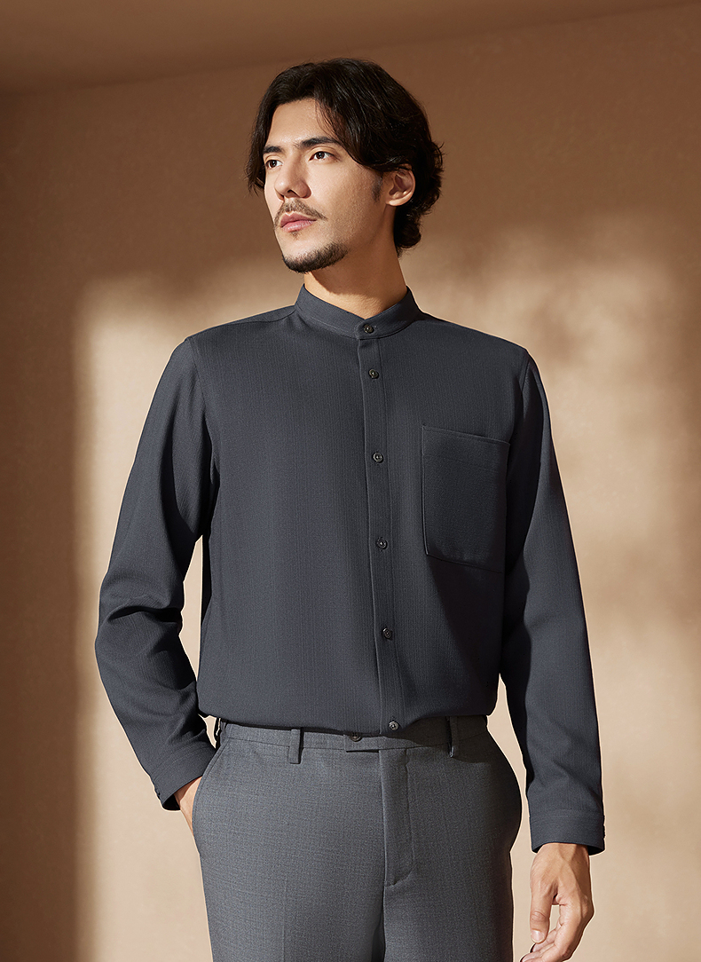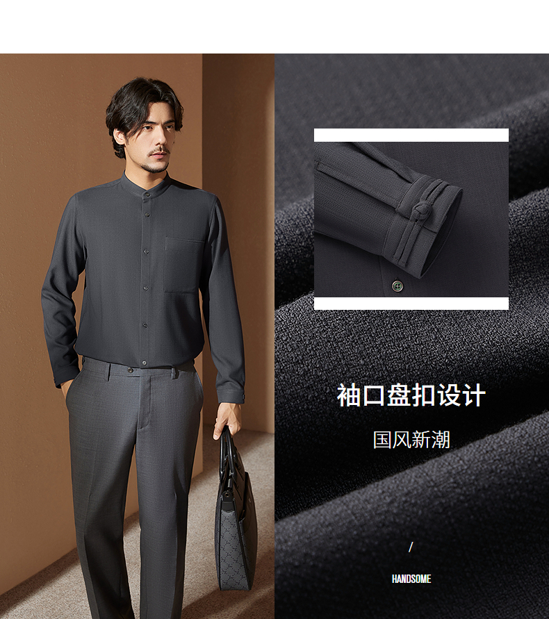 【中华立领】柒牌立领衬衫男2024春秋新款时尚休闲中国风长袖衬衣 127A70010