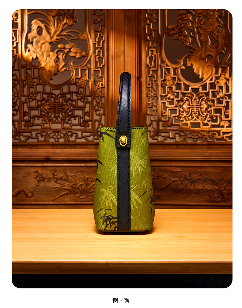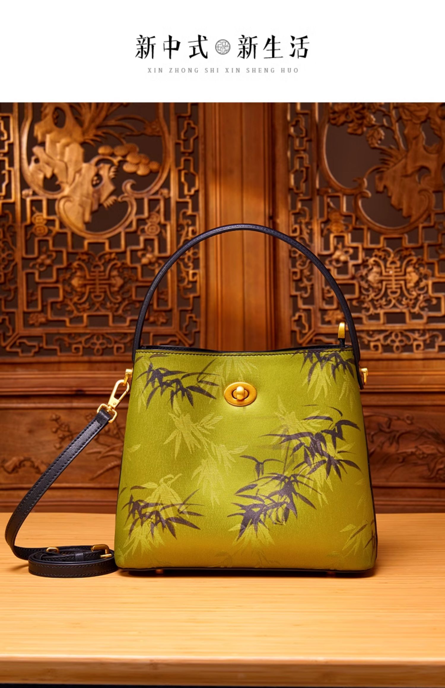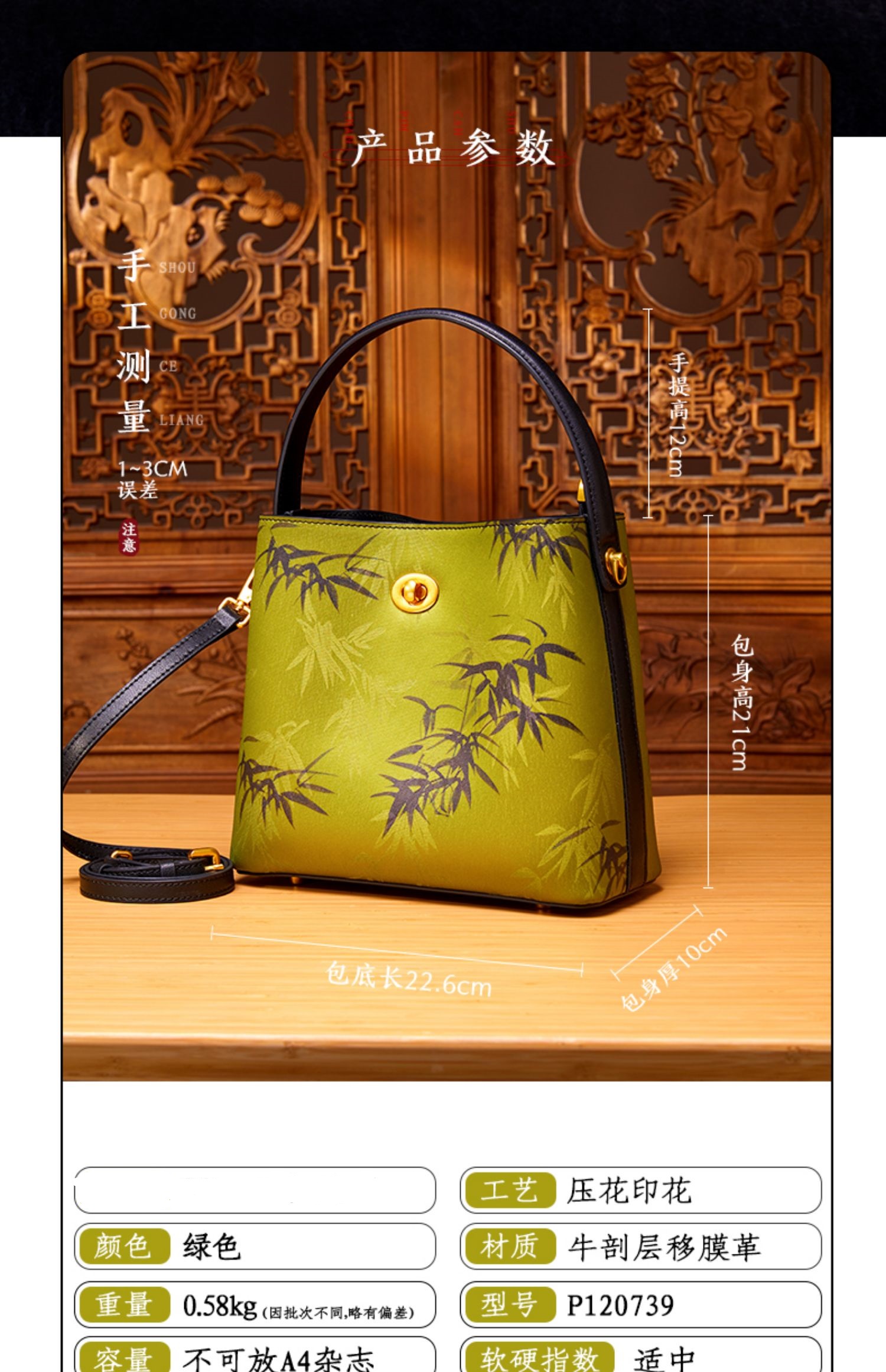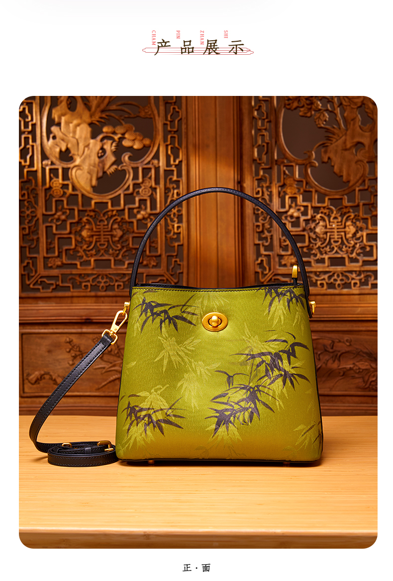 新中式复古绿色竹叶印花,设计单肩斜挎手提精致旗袍包TX-P120739