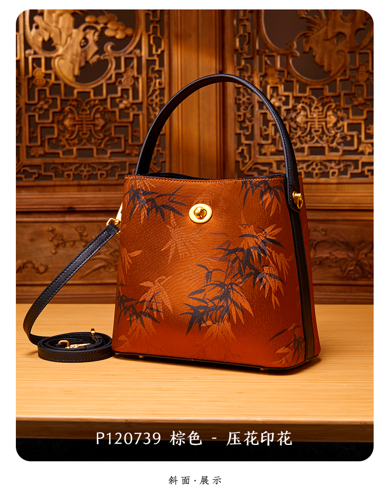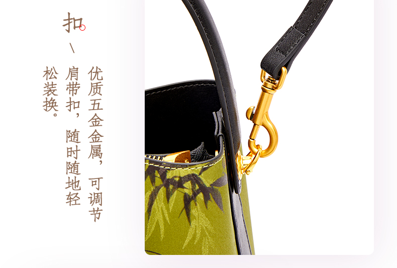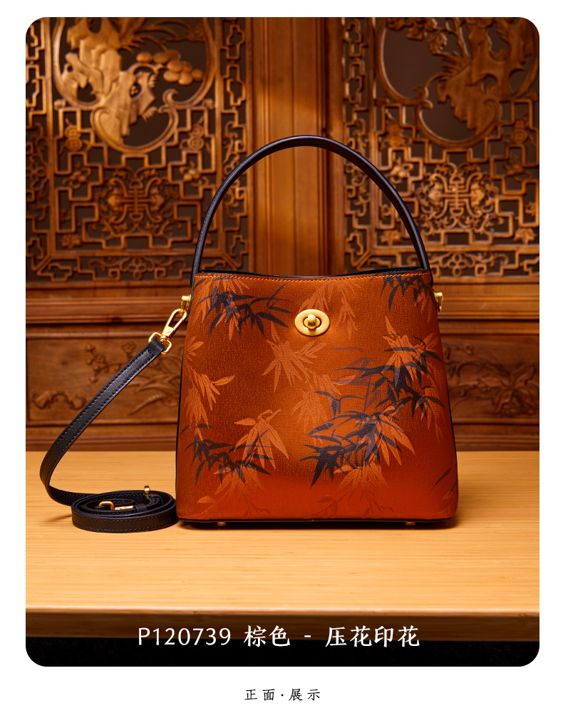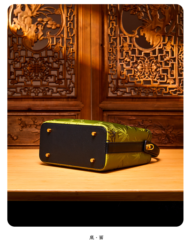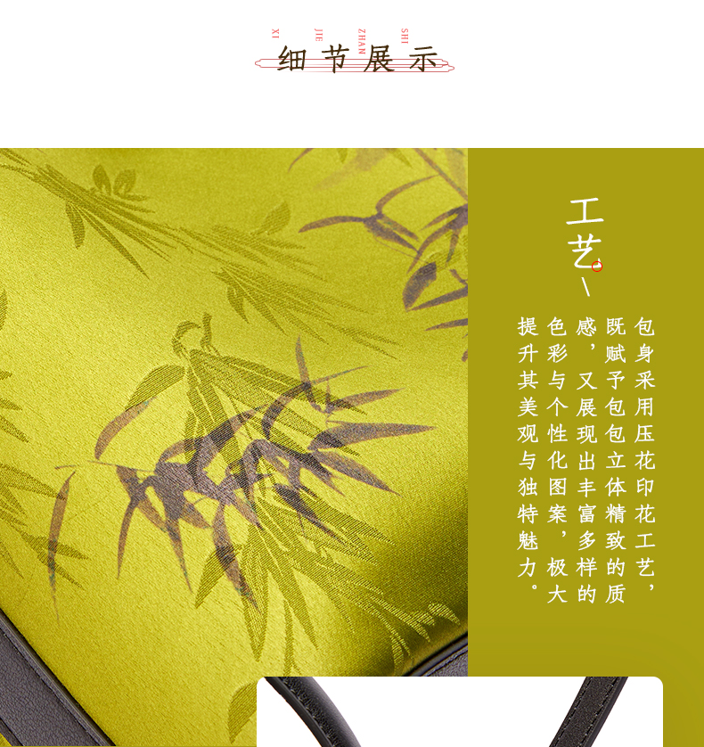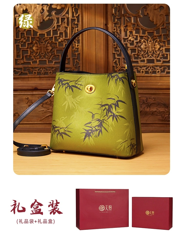 新中式复古绿色竹叶印花,设计单肩斜挎手提精致旗袍包TX-P120739