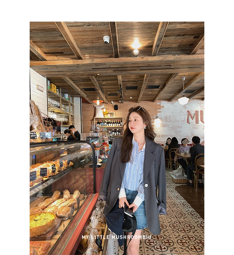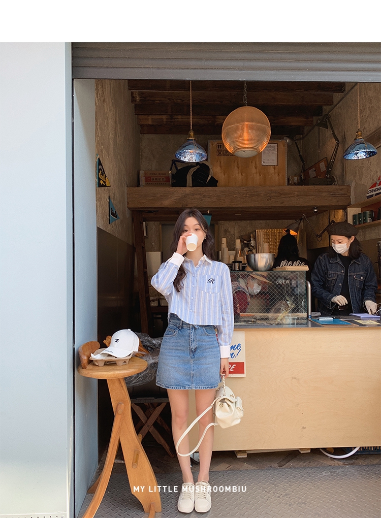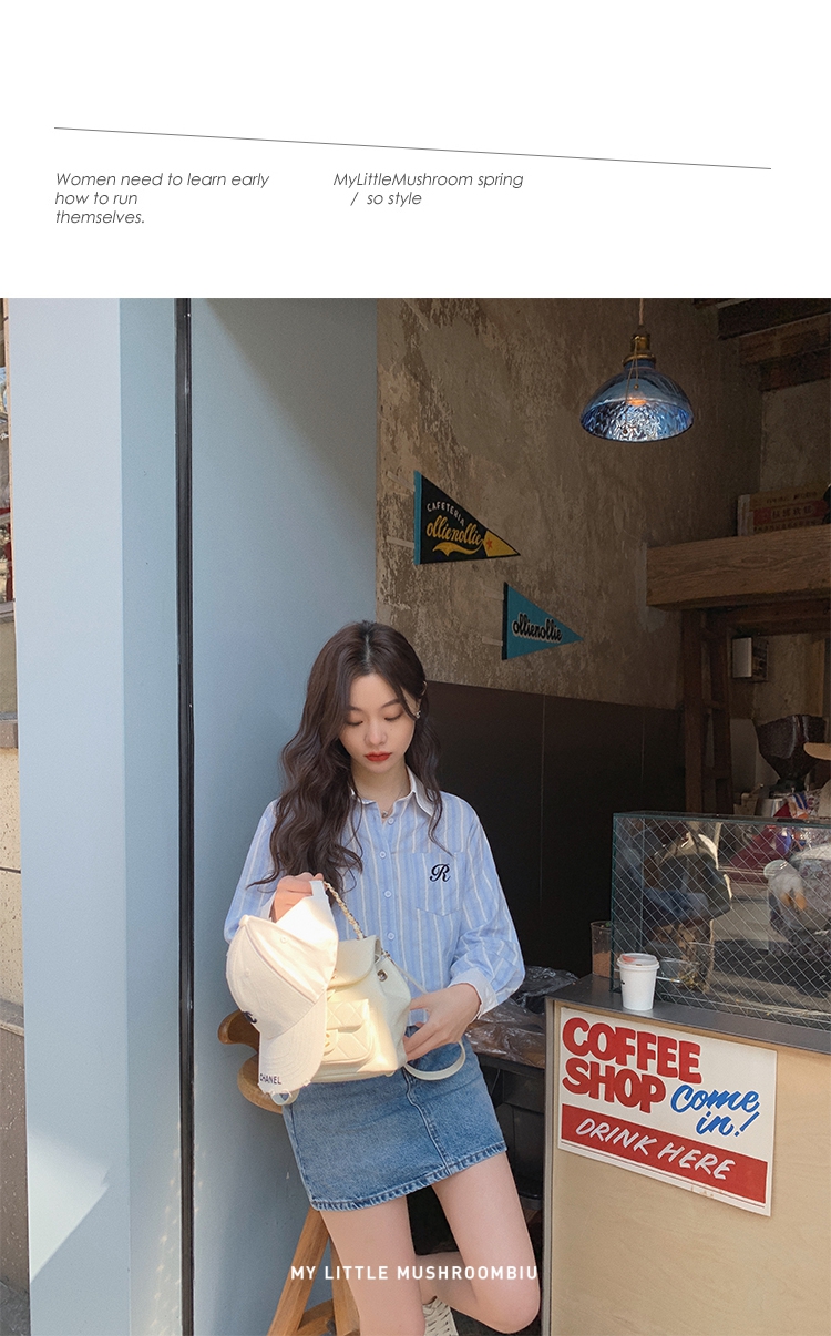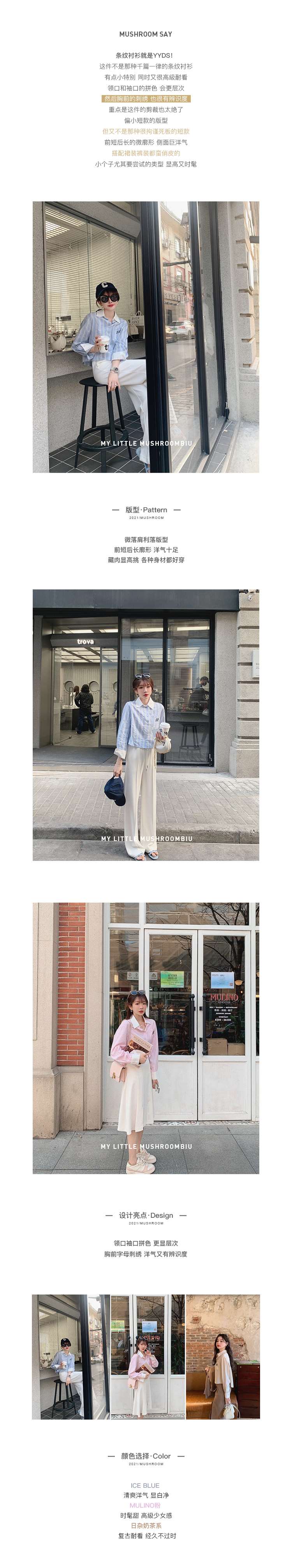 金蘑菇菇【Mulino日杂衬衫】青春洋溢超甜系百搭宽松条纹衬衫