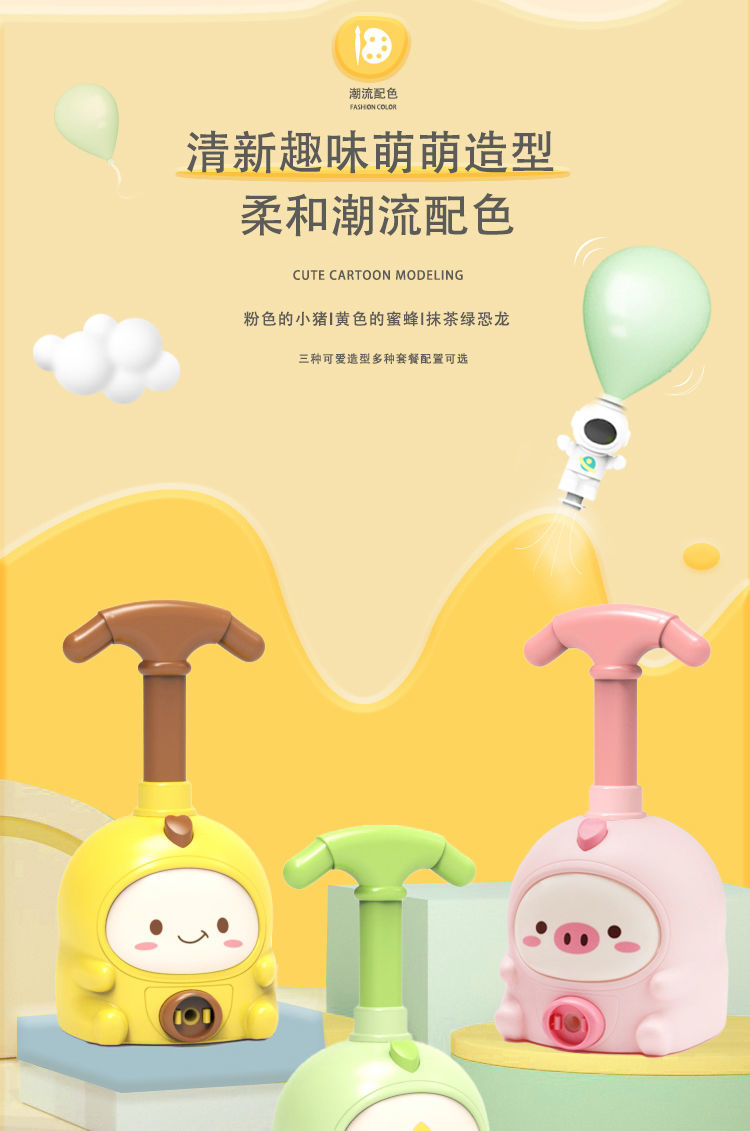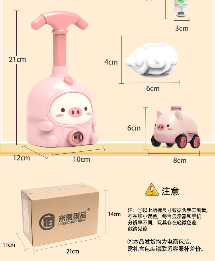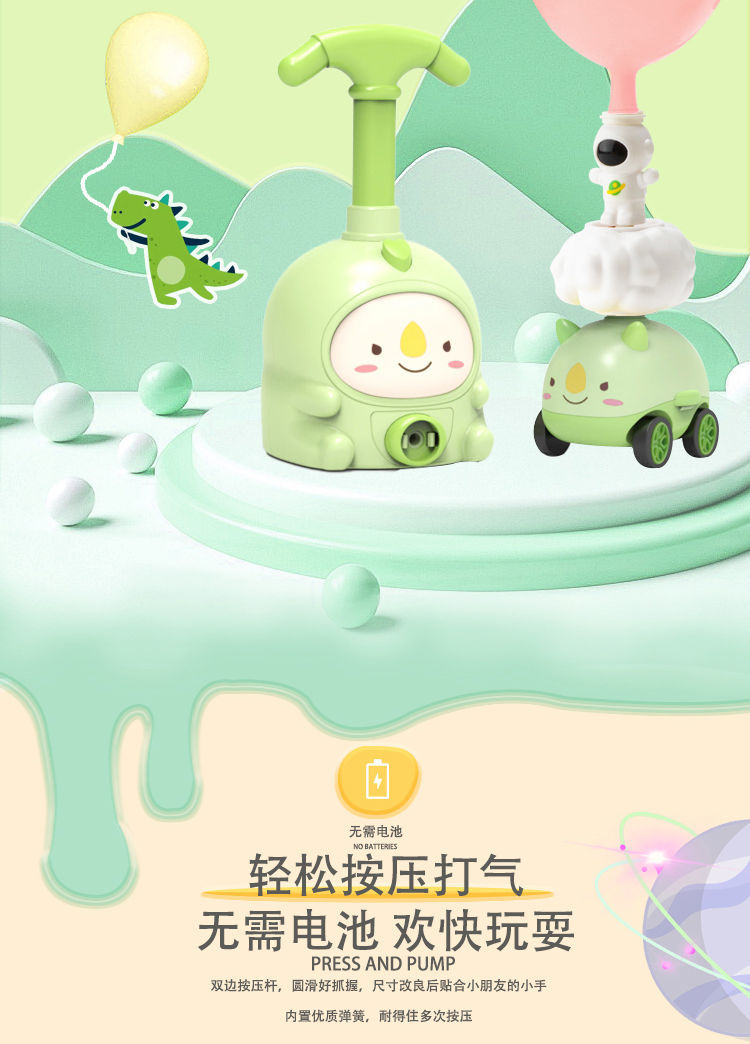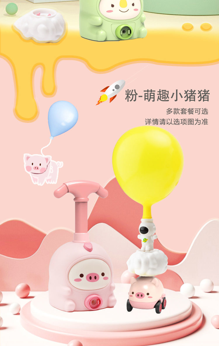 小粉猪空气动力车打气球恐龙玩具网红儿童科学实验充气宝宝男女孩国庆出游