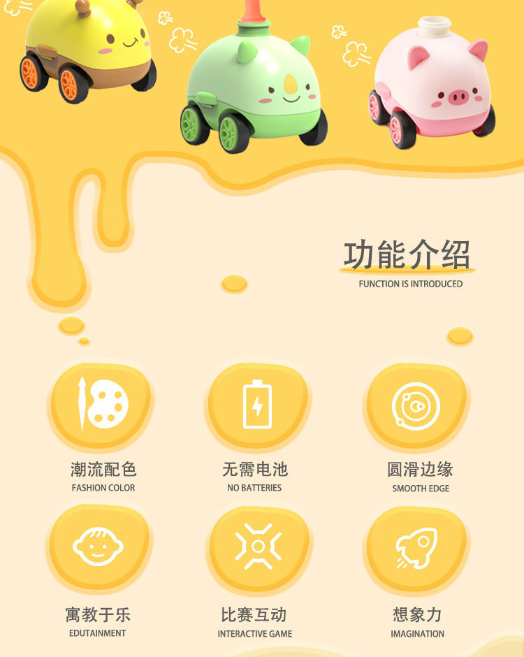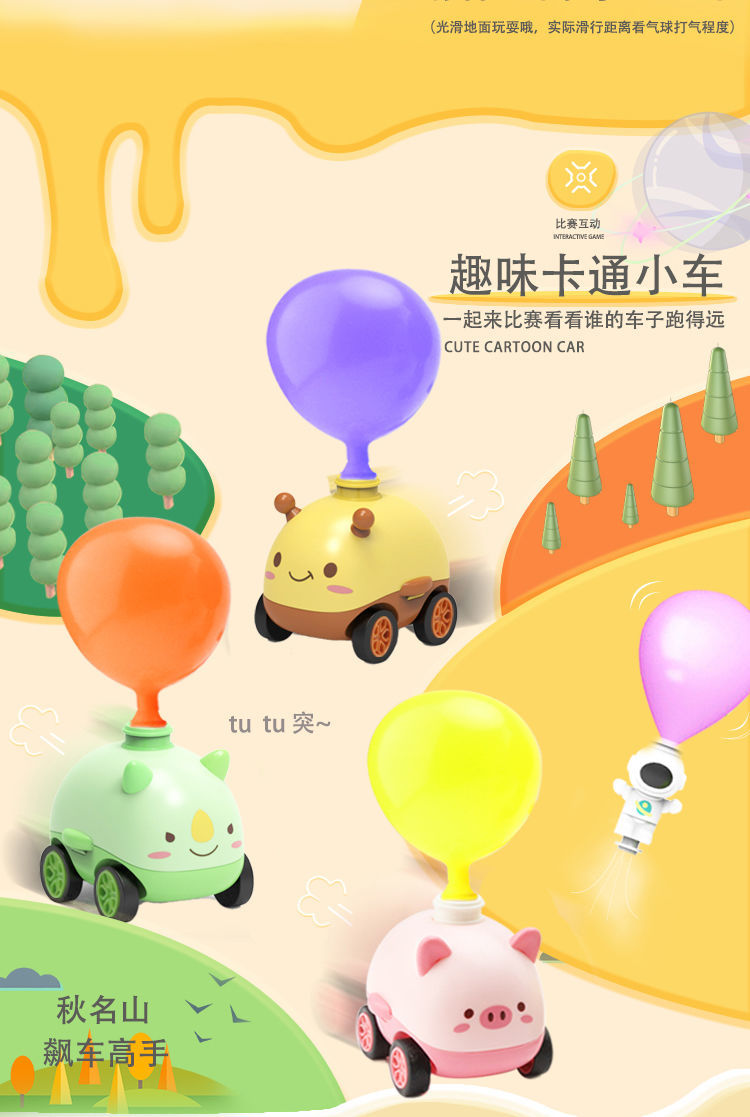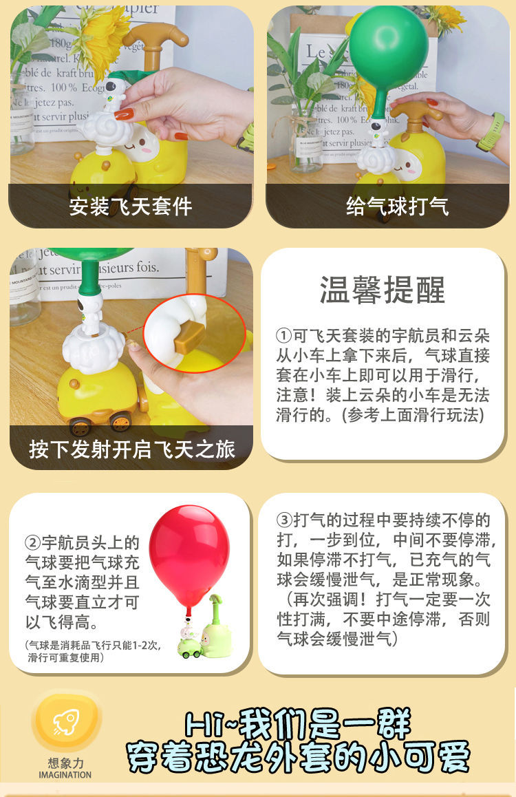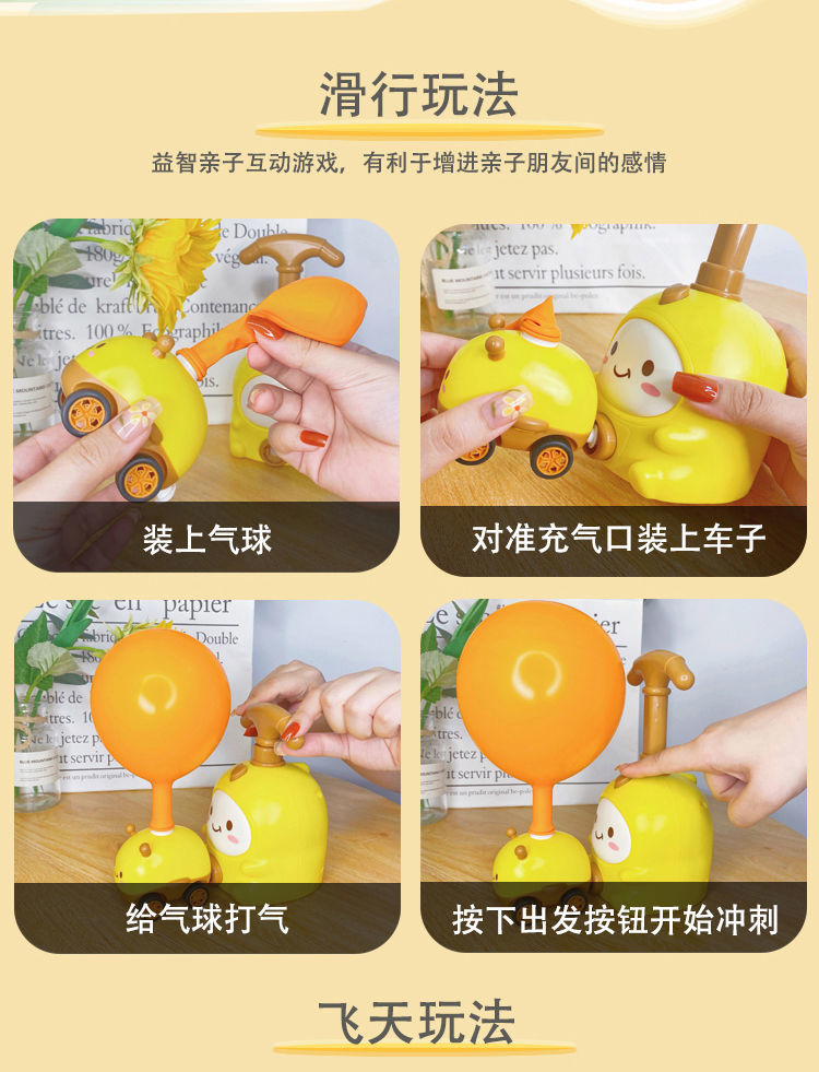 小粉猪空气动力车打气球恐龙玩具网红儿童科学实验充气宝宝男女孩国庆出游