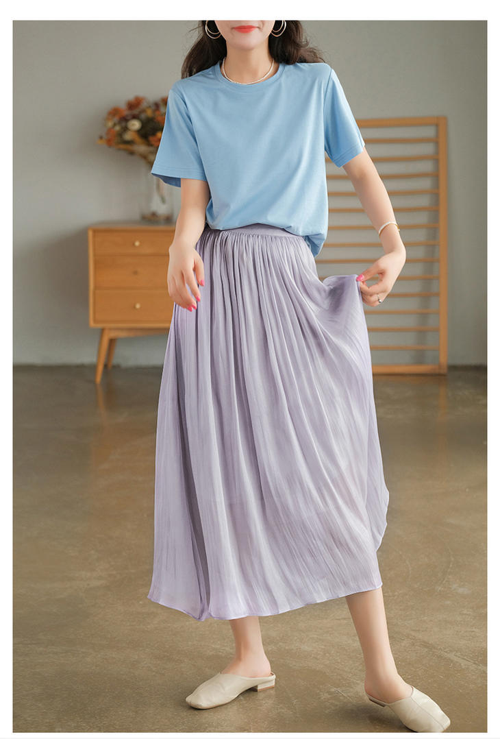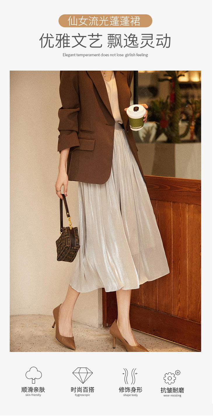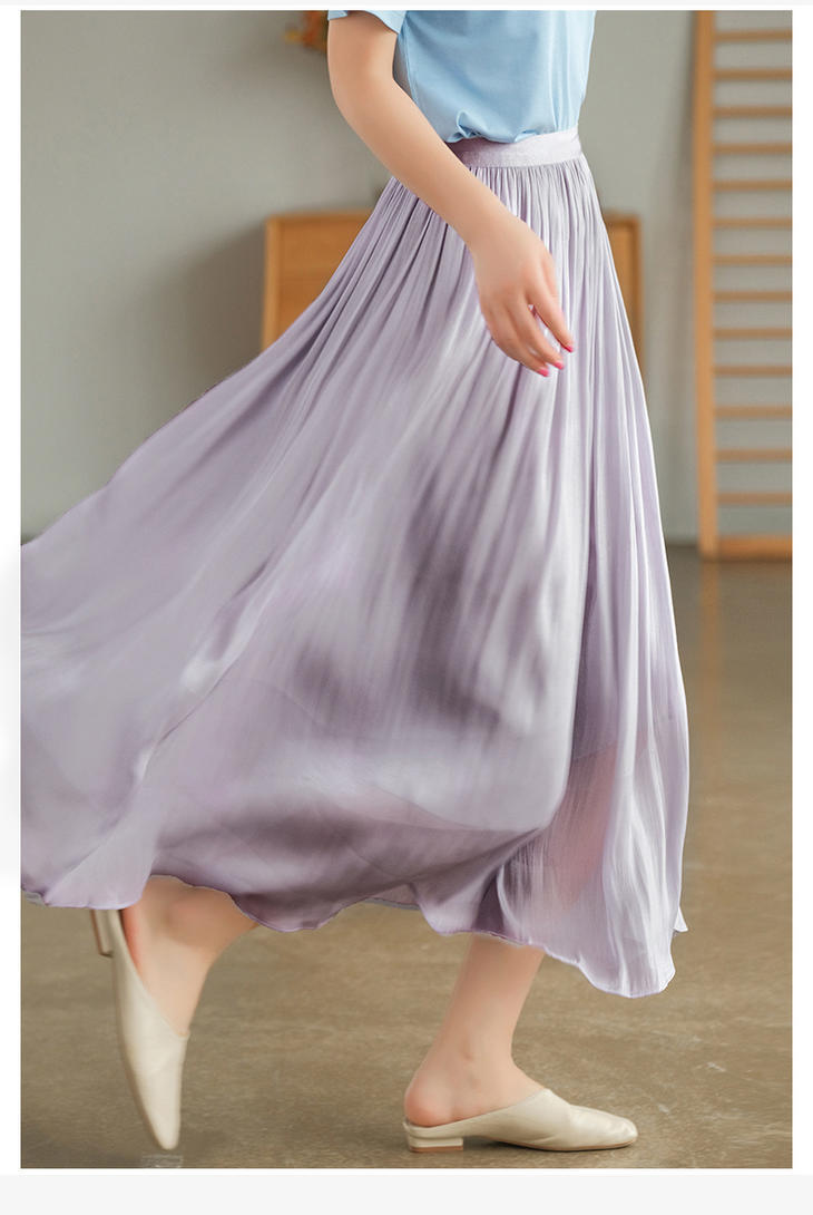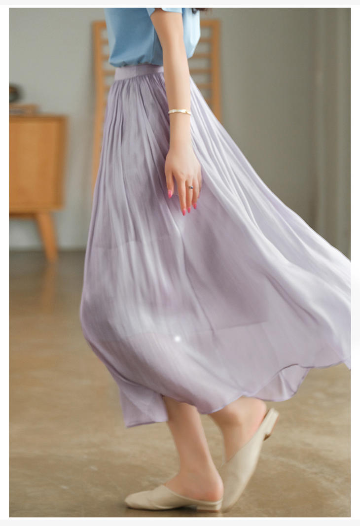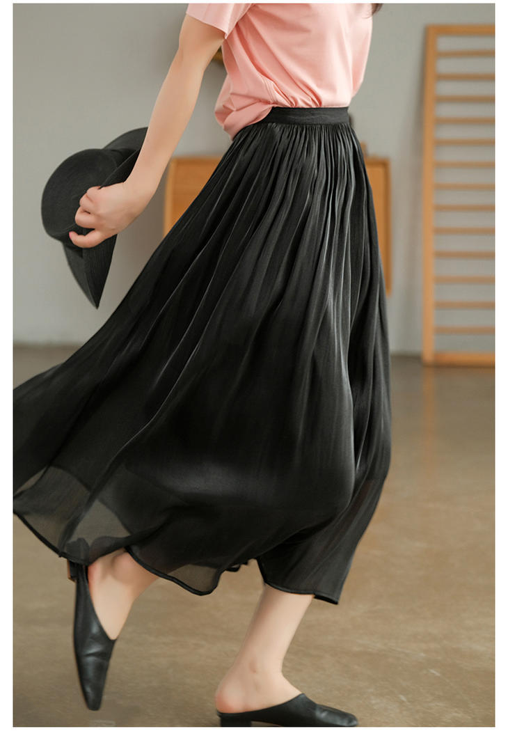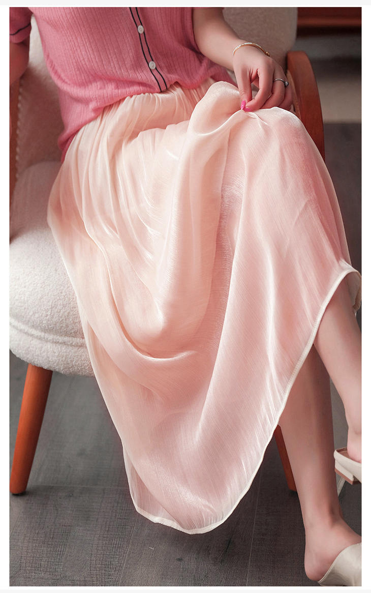 【新款半身裙女薄款】百褶双层丝光蓬蓬裙 清新网纱韩版清新褶皱仙女裙