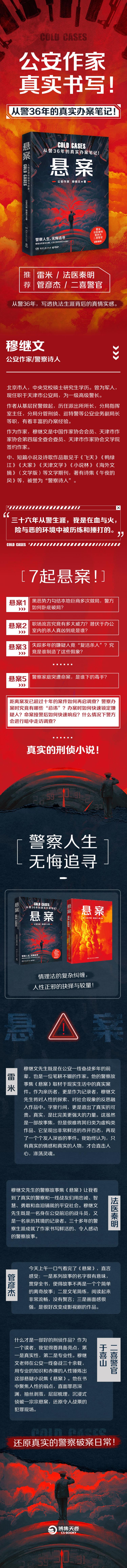 7起悬案! 作者从警36年的真实办案笔记! 悬案1: 黑恶势力勾结本地巨商多次做局,警方如何卧底破局? 悬案2: 职场流言究竟有多大威力?潜伏于办公室内的杀人真凶到底是谁? 悬案3: 失踪多年的嫌疑人竟“复活杀人”?究竟是谁制造了这些假象? …… 悬案5: 警察家庭突遭命案,是谁下的毒手? …… 距离案发已超过十年的案件如何再启调查?警察办案时究竟有哪些“忌讳”?办案时如何快速锁定嫌疑人?命案接警后如何快速响应?什么情况下警方会进行暗中走访调查? …… 真实的刑侦小说! 还原真实的警察破案日常! 写透执法生涯背后的真情实感。
