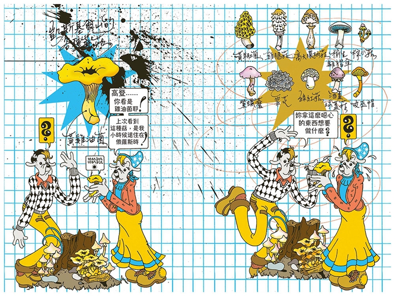 这本书是一场融合迷幻科学、神秘主义、艺术诠释的视觉派对,他透过复古数位+迷幻民族风的核弹等级图像叙事,重现了西方「民俗真菌学」开创者瓦森与妻子瓦伦蒂娜的人生追寻与蘑菇起源的传奇。它同时也是两人毕生彼此扶持的爱情纪录,更是献给非普通读者的一场视觉与心灵大冒险。