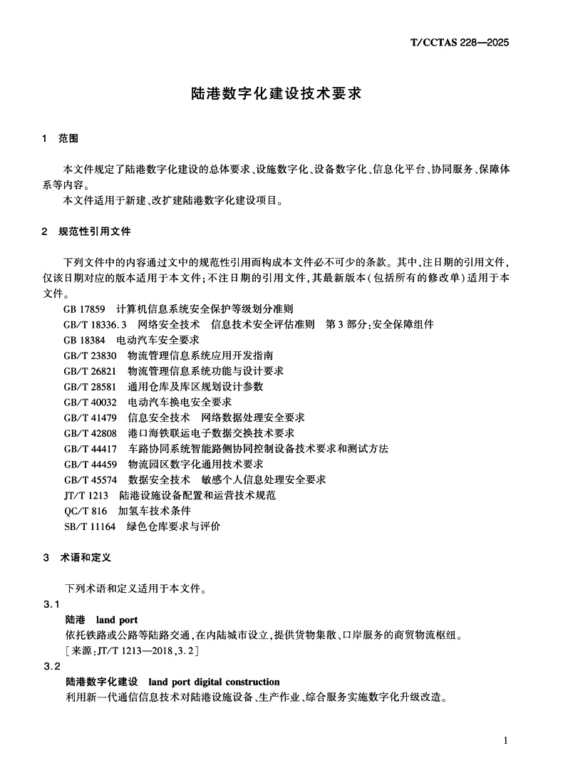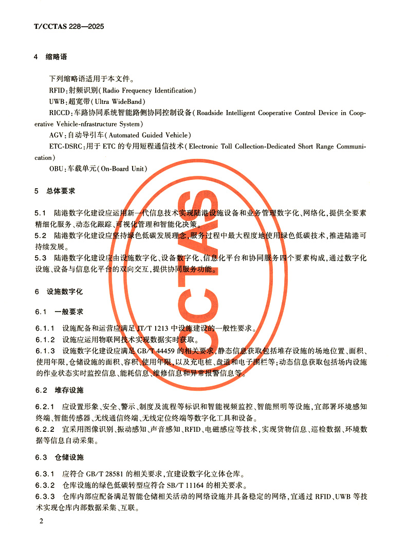 陆港数字化建设技术要求T/CCTAS 228—2025