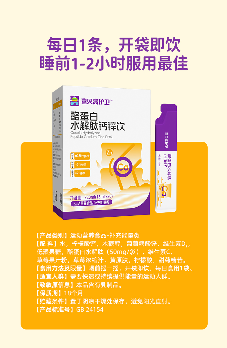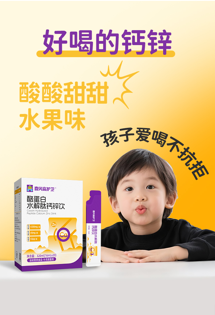 ² 【喜贝高酪蛋水解肽钙锌饮】每袋含330mg钙+水解酪蛋白50mg+5mg锌 20条/盒 HM02-CRMM-XBG(HOT)