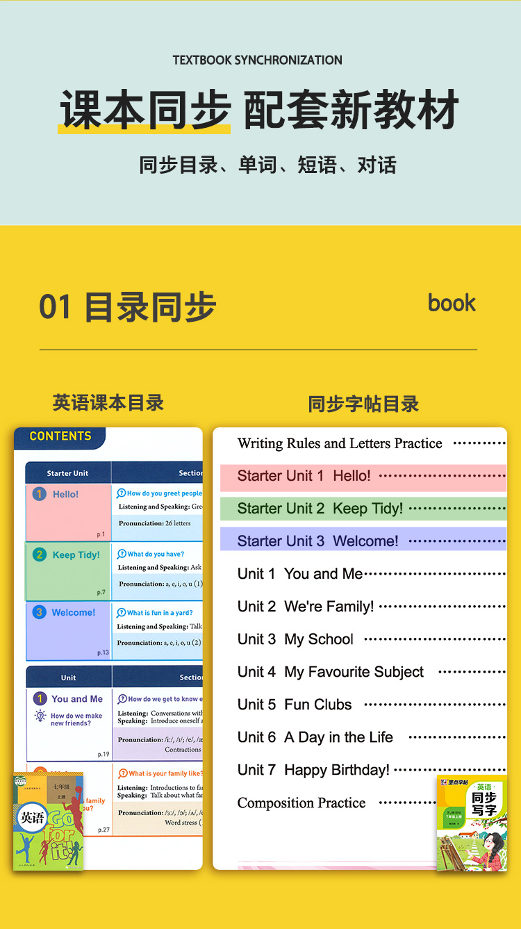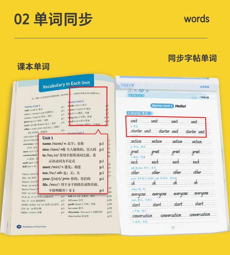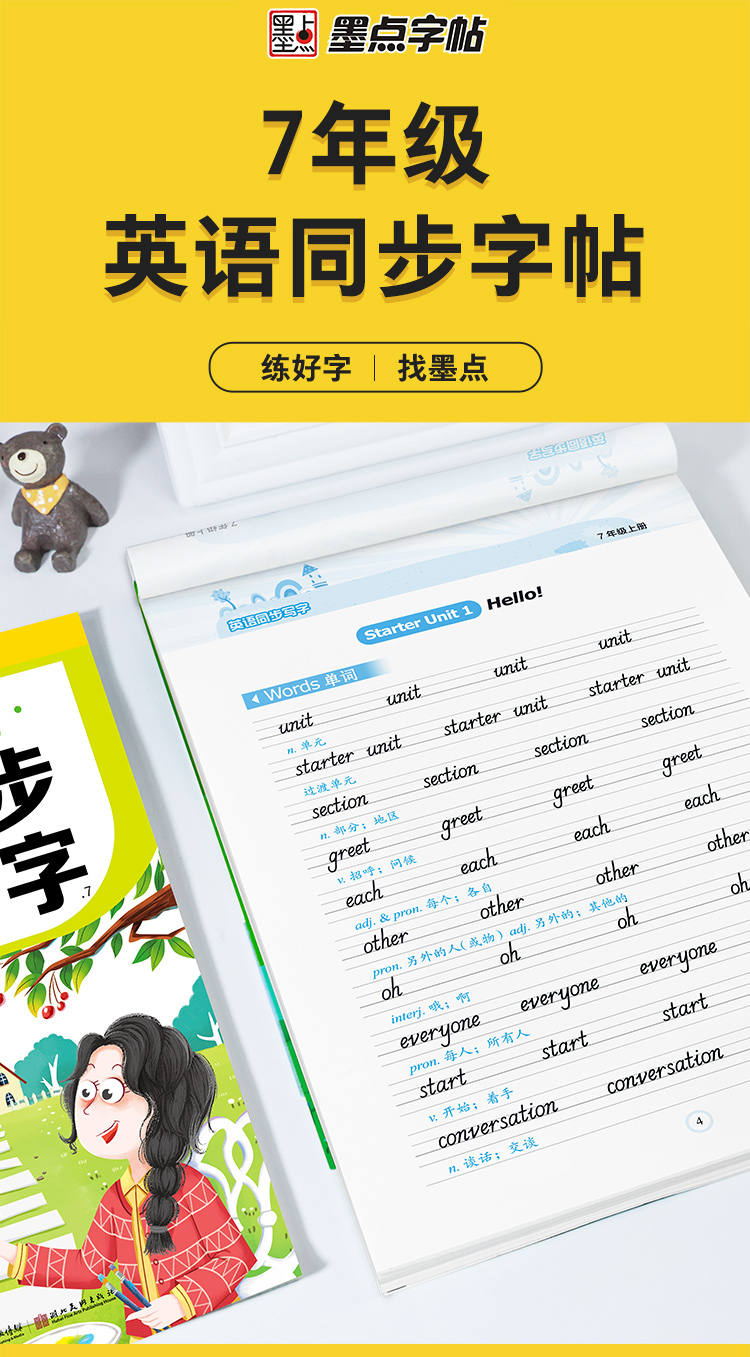 七年级上册英语字帖人教版课本同步写字练习练字本墨点初中七年级英语字帖中学生英文字母单词词汇钢笔练字专用初中生练字帖