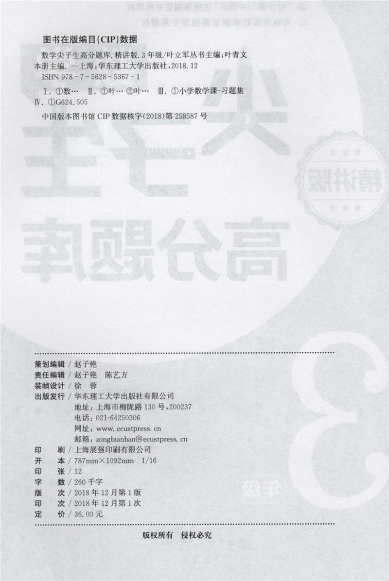 数学尖子生高分题库 精讲版 三年级/3年级 从课本双基到竞赛培优 小学生三年级奥数辅导书 华东理工大学出版社