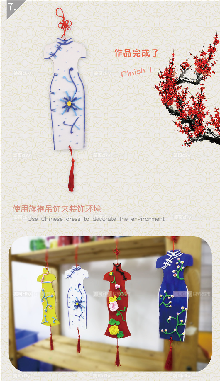 中国旗袍吊饰 木质中国风手工DIY材料 木旗袍挂牌幼儿园diy材料