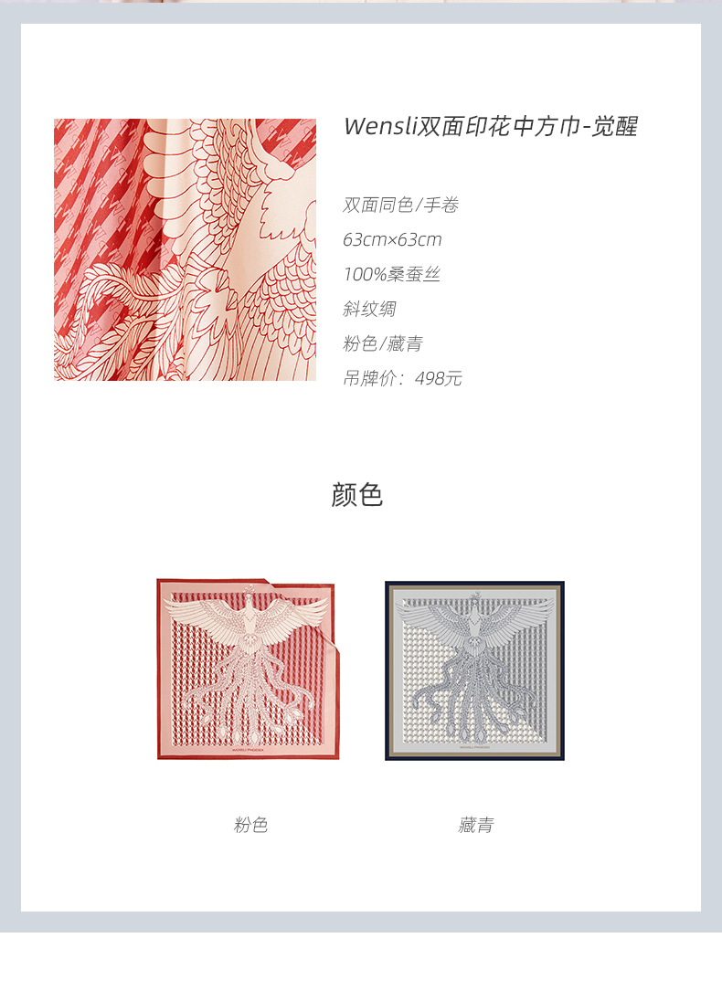 凤凰之家“觉醒”63厘米双面印花真丝中方巾