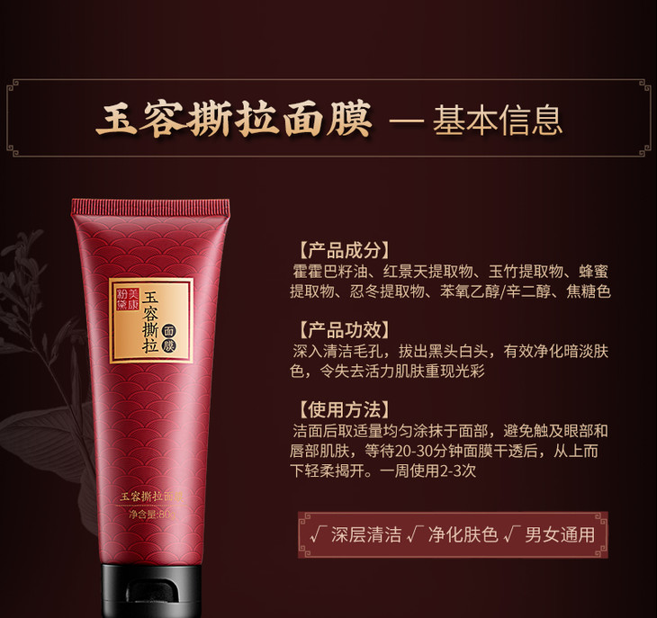 【微商城】【79元3件】美康粉黛 玉容撕拉面膜80g