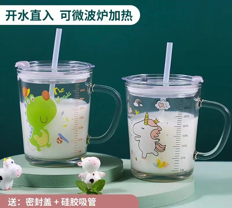 会员1折1元享!带刻度 玻璃吸管 牛奶杯