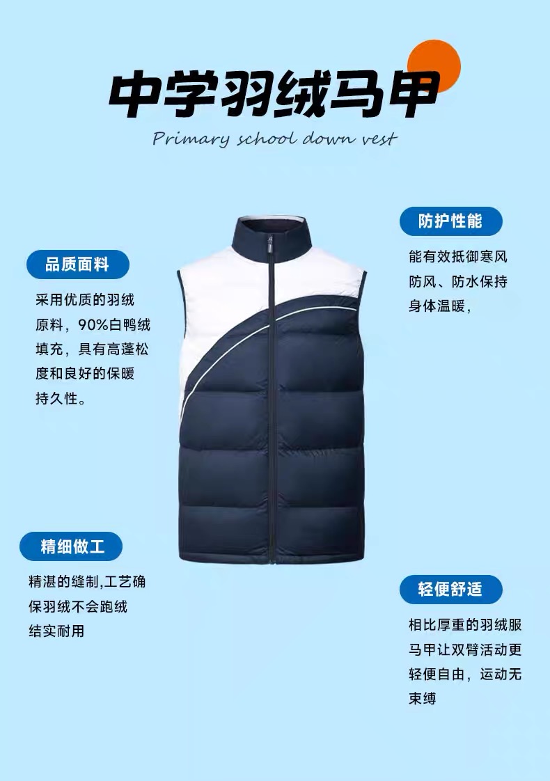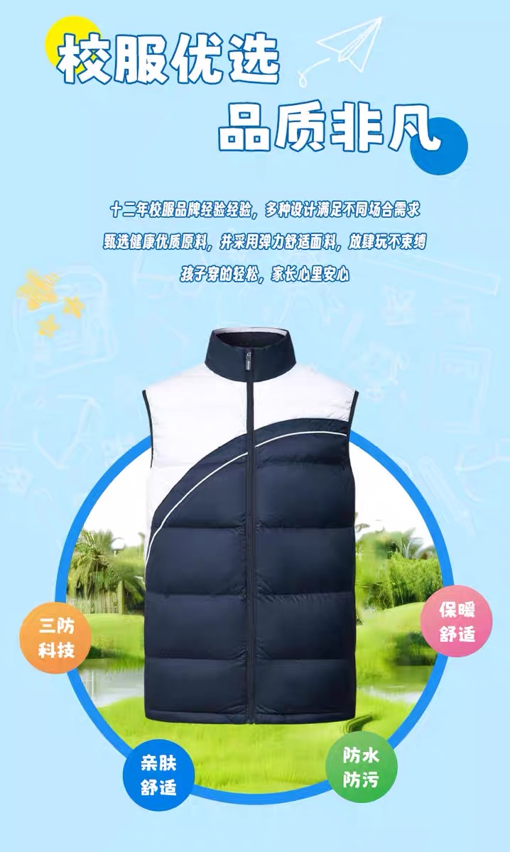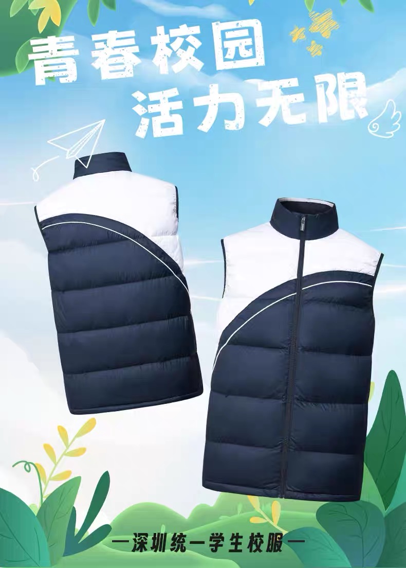 创童特版深圳校服中学生羽绒马甲棉马甲轻盈90白鸭绒秋冬装男女三防面料
