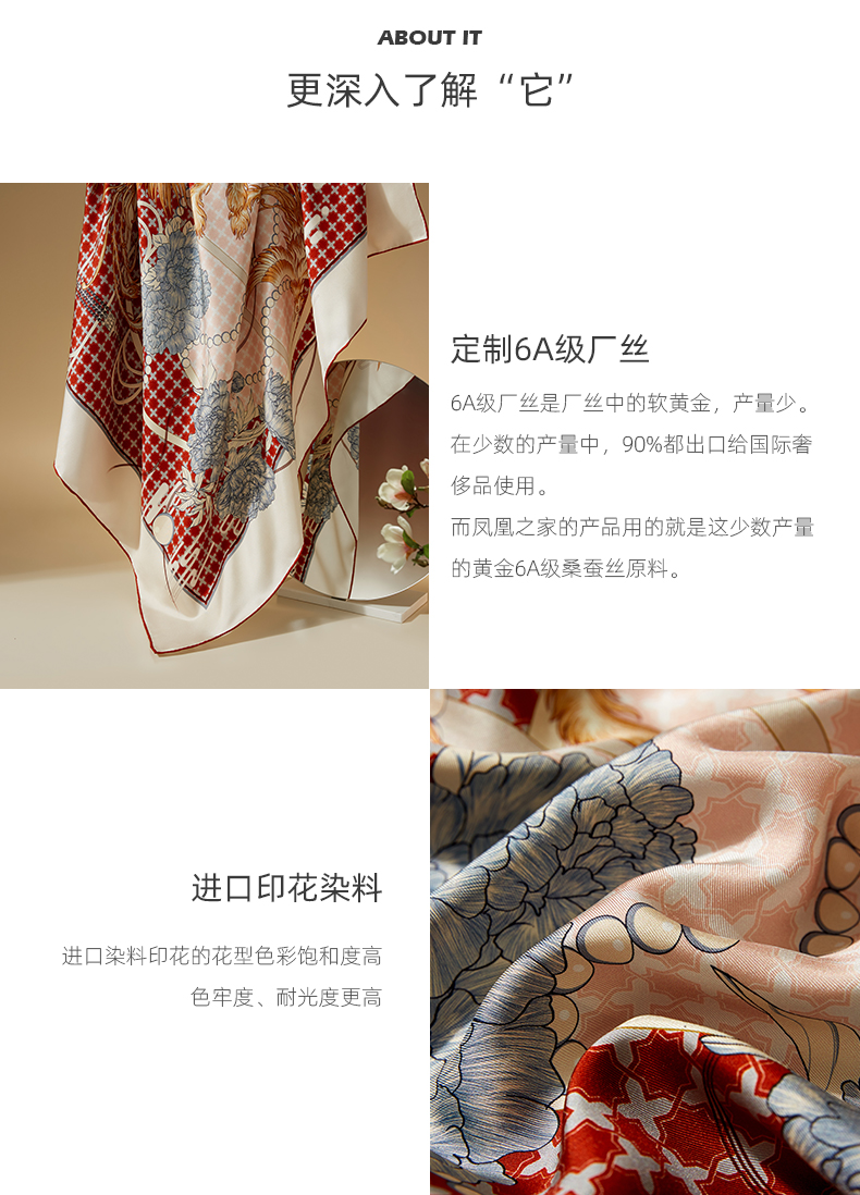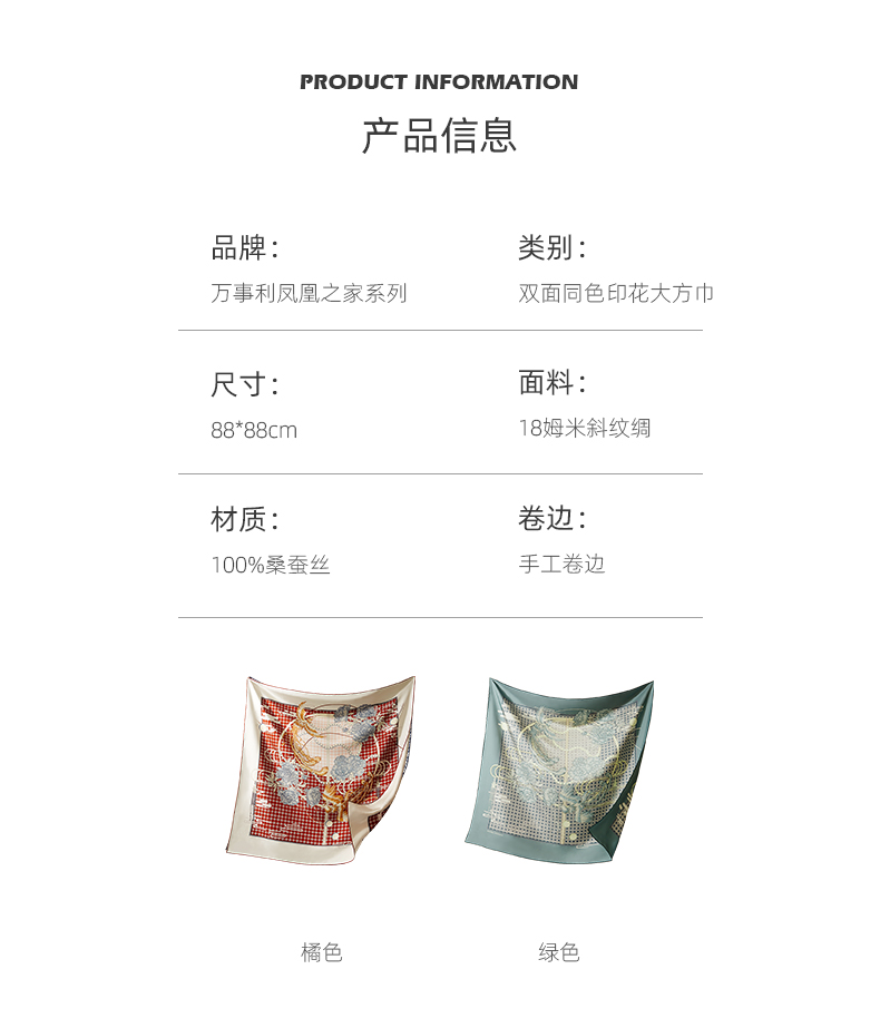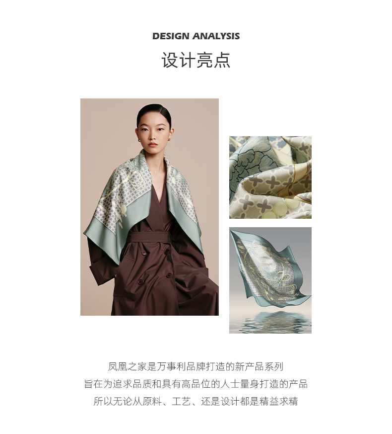 凤凰之家“凤兮”88厘米双面印花大方巾