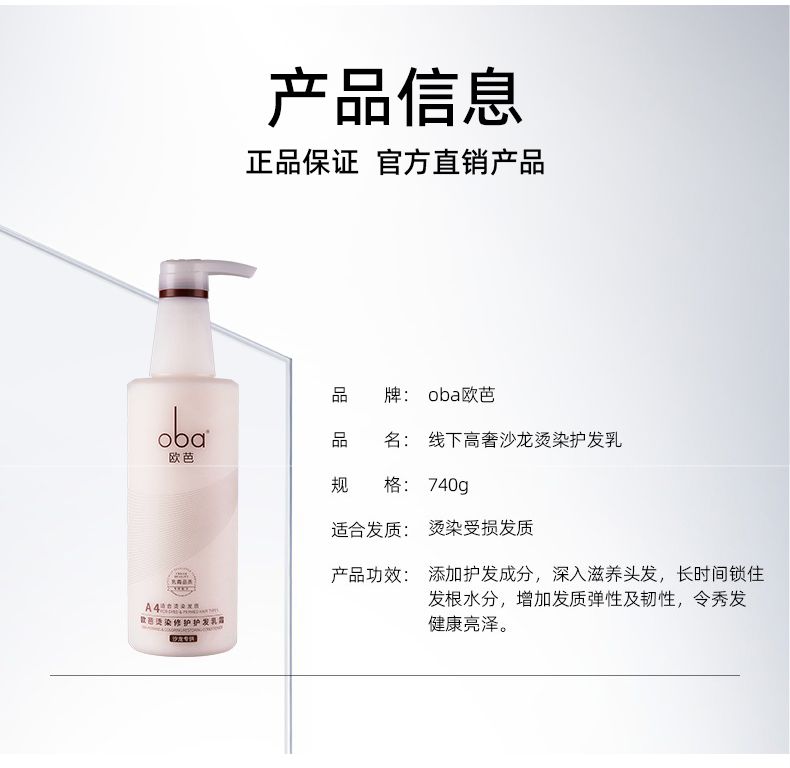 欧芭oba二代A3烫染修护洗发乳霜滋养柔顺受损修护洗发露740ml