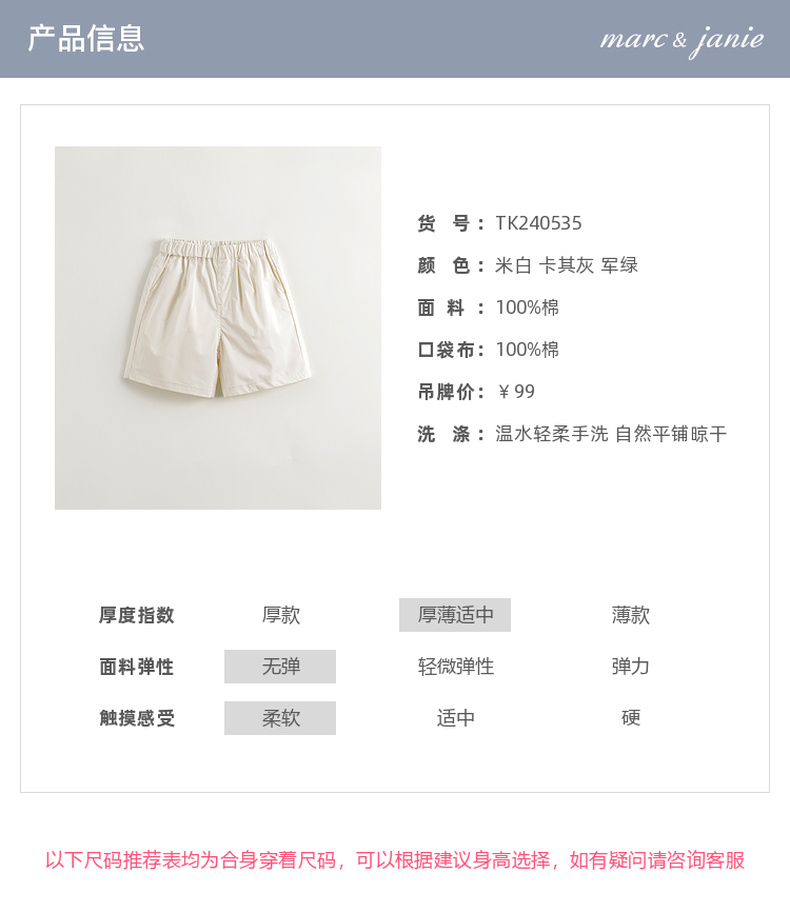 马克珍妮2024年夏装新款男童工装户外纯棉短裤240535