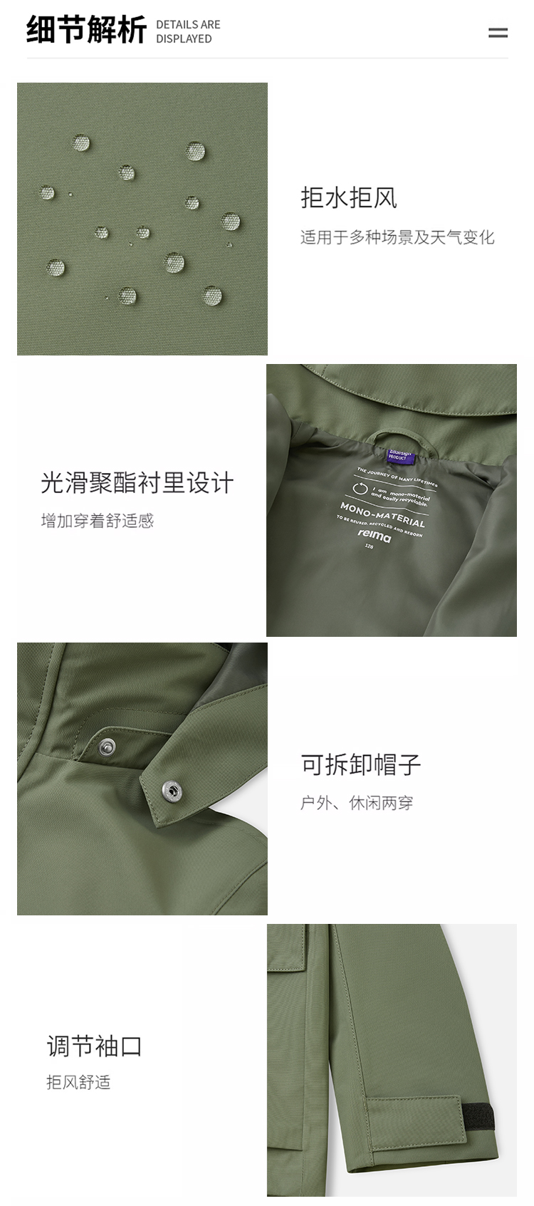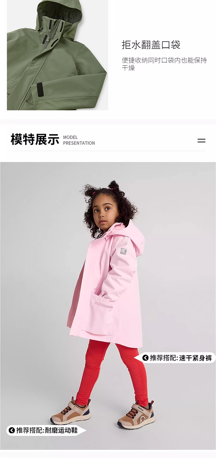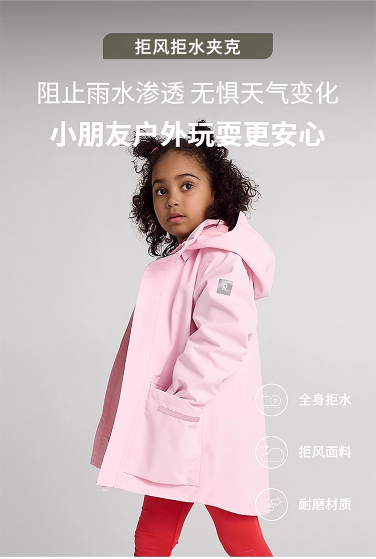 reima男女儿童夹克2024春季新款户外 拒水运动耐磨连帽外套