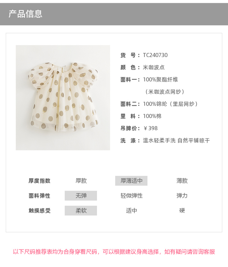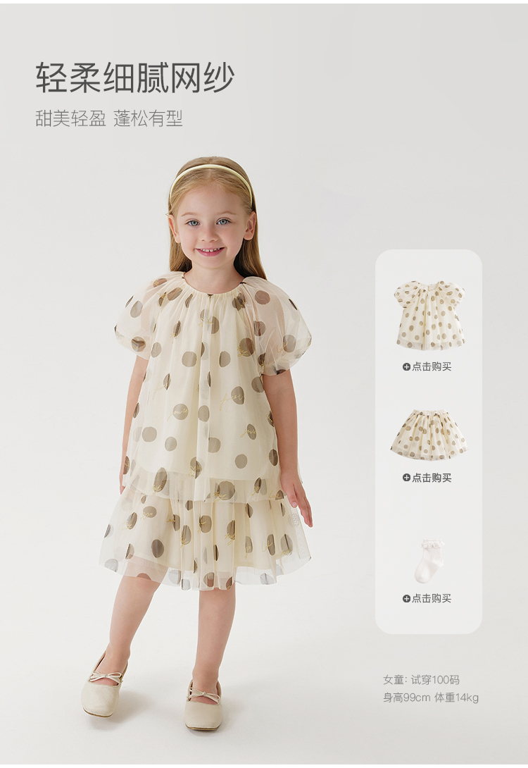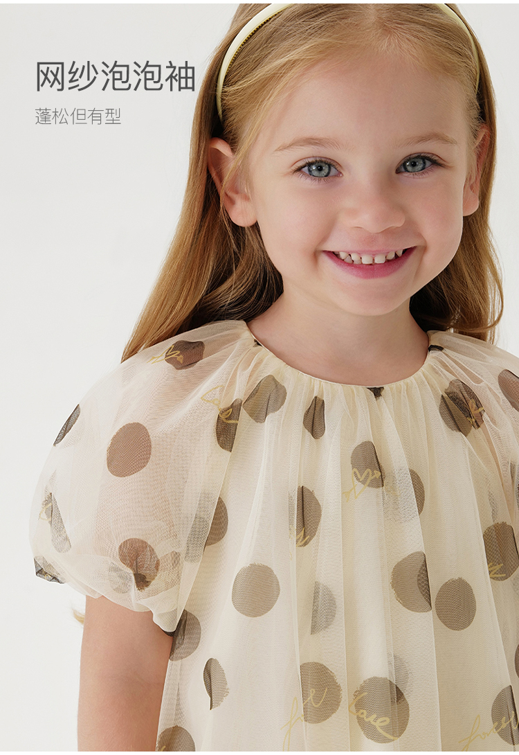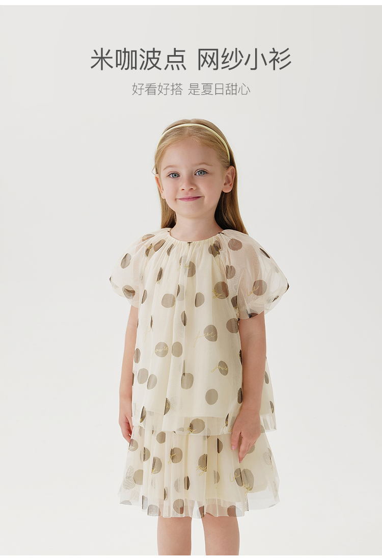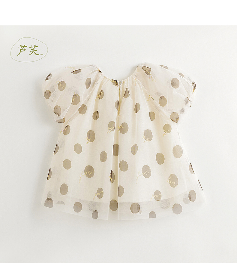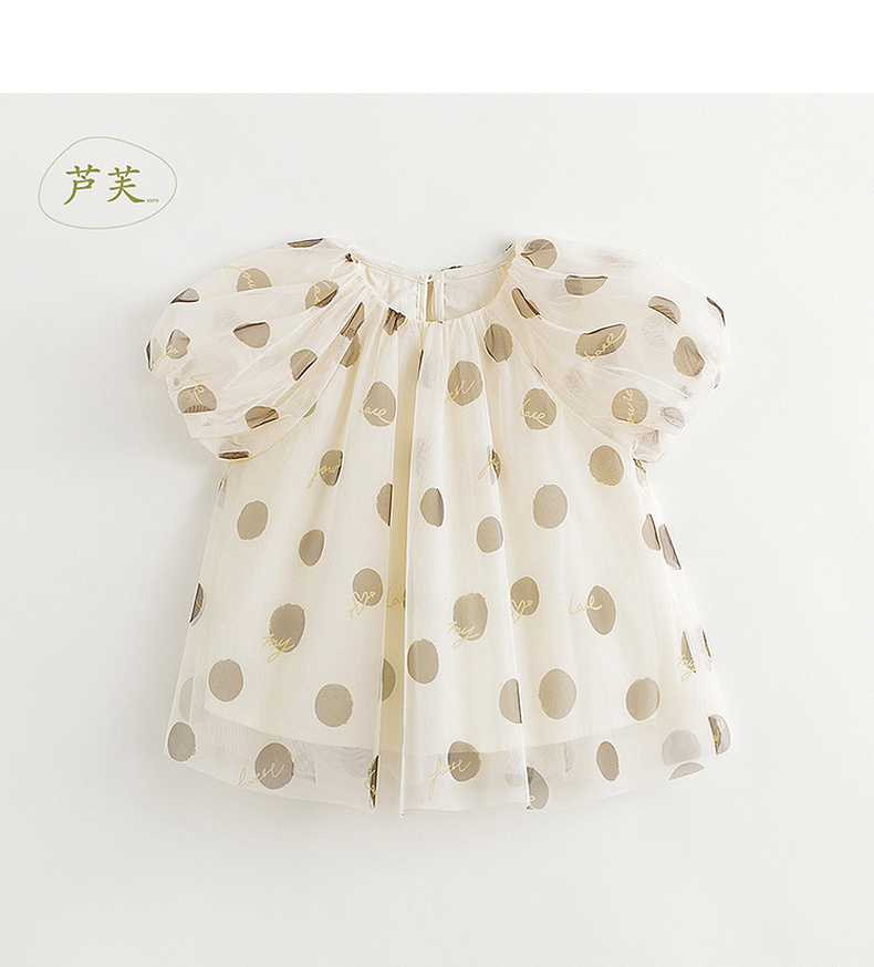 【马克珍妮芦芙】女童波点轻盈网纱泡泡袖衬衫儿童衬衣夏装240730