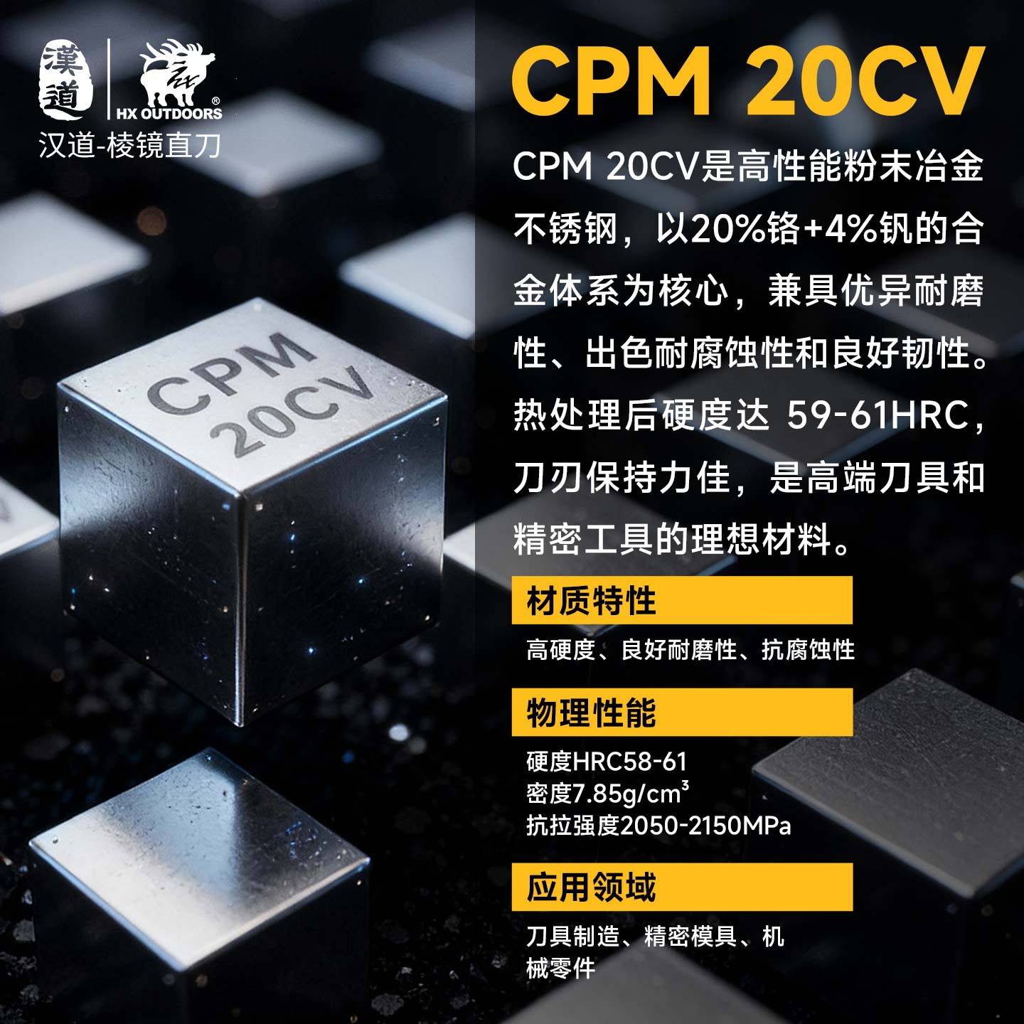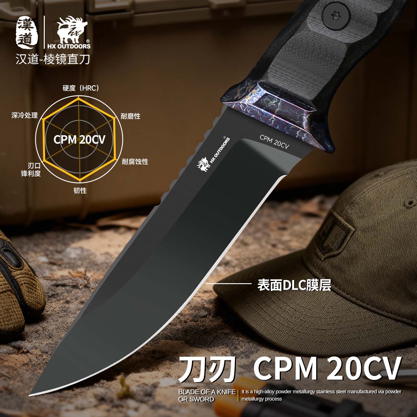 汉道棱镜CPM20CV粉末钢户外露营高硬度锋利便携手把肉小刀