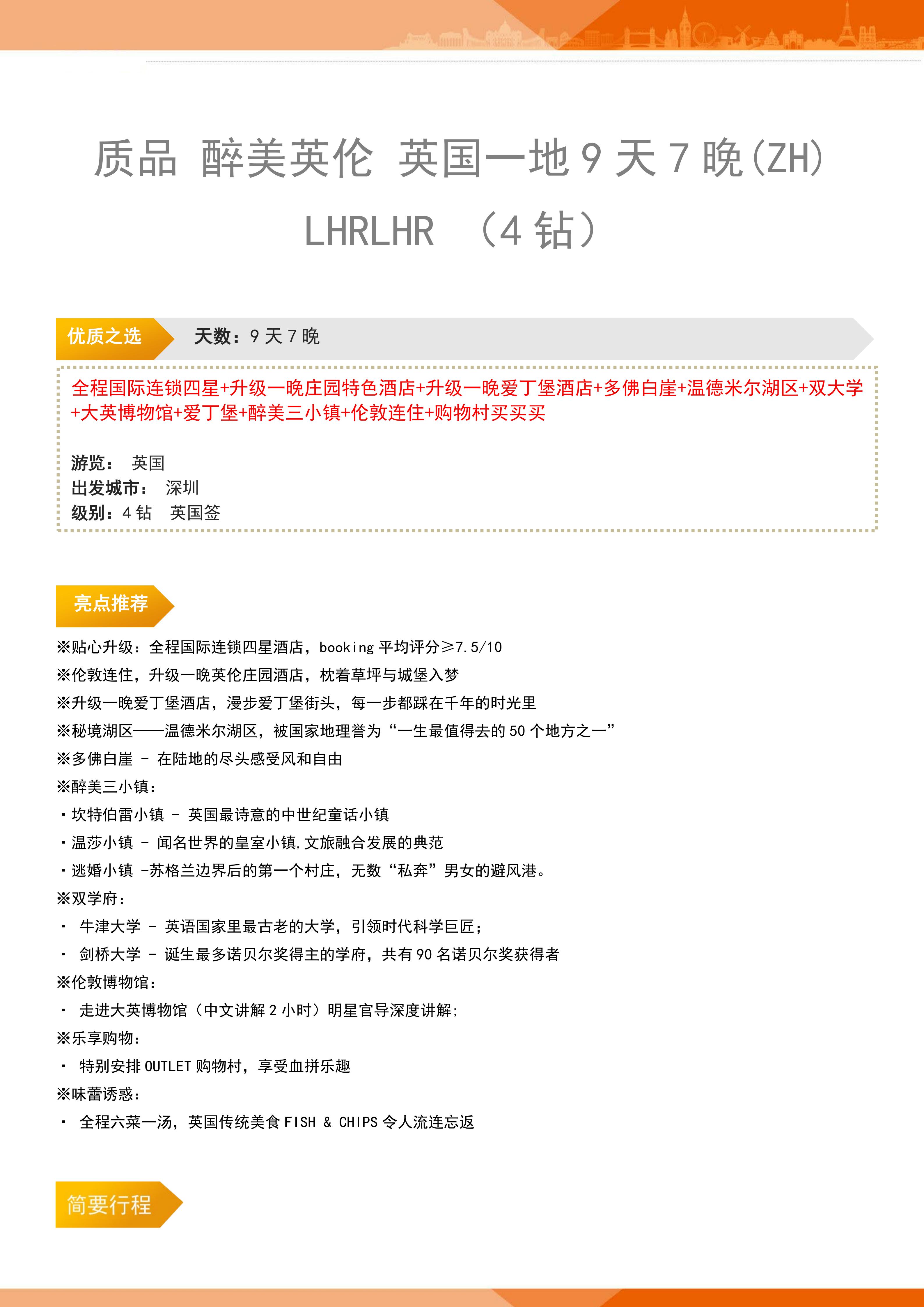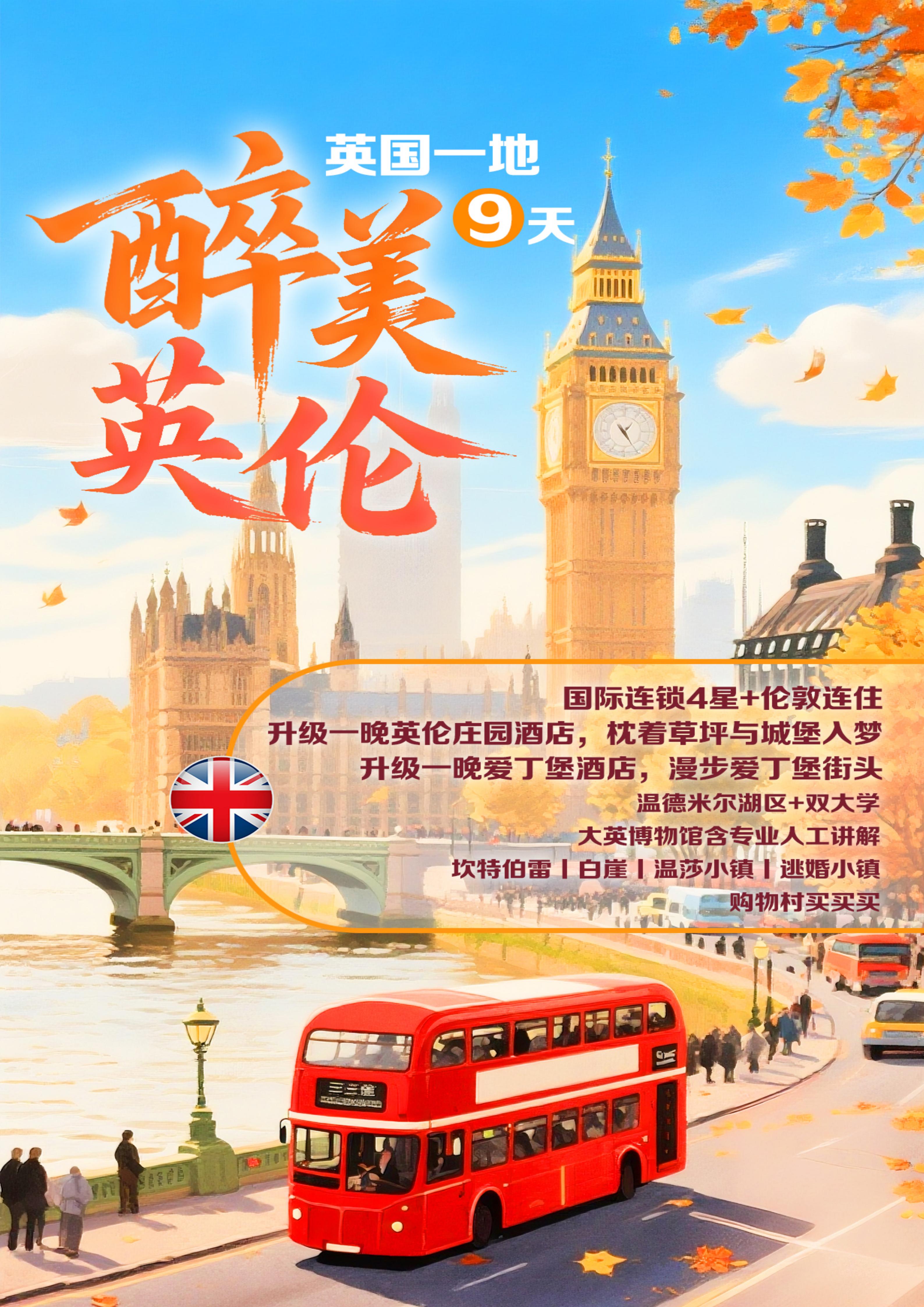 【春节-特惠游】<英国一地9天7晚-深圳直飞往返>多佛白崖+温德米尔湖区+牛津大学+剑桥大学+大英博物馆+爱丁堡+坎特伯雷小镇+温莎小镇+逃婚小镇+伦敦连住+全程四星酒店
