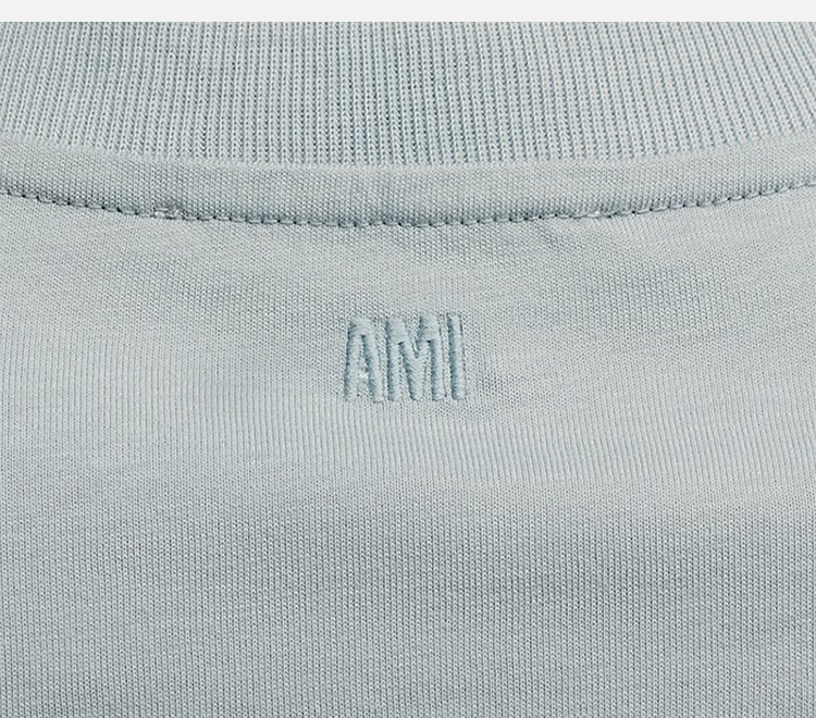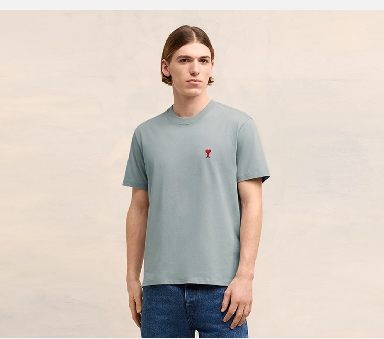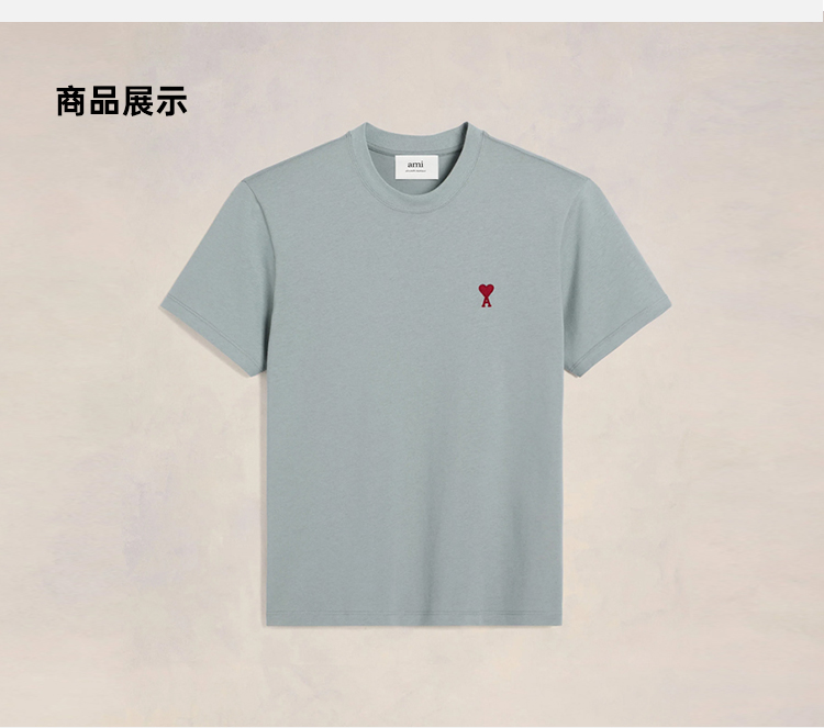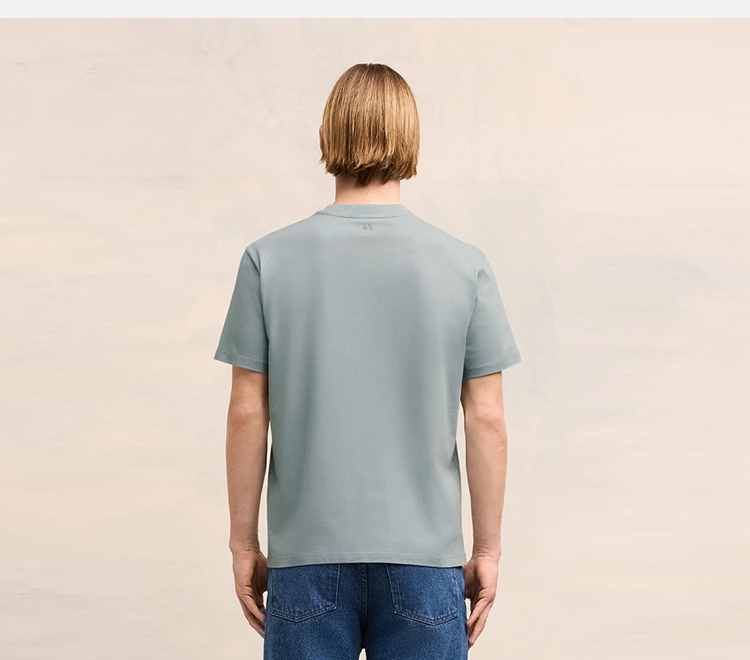 AMI 男士徽标刺绣棉质圆领短袖T恤 蓝色 UTS035 724 4012