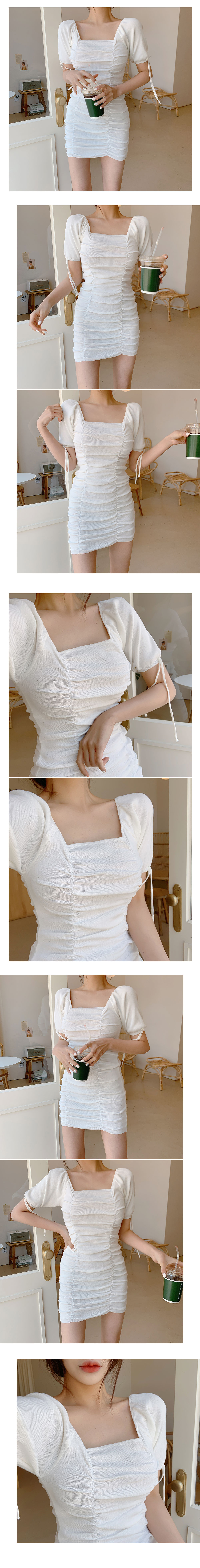 Square pleated bubble ribbon knitted dress抽褶泡泡丝带连衣裙JPY带授权招加盟代理