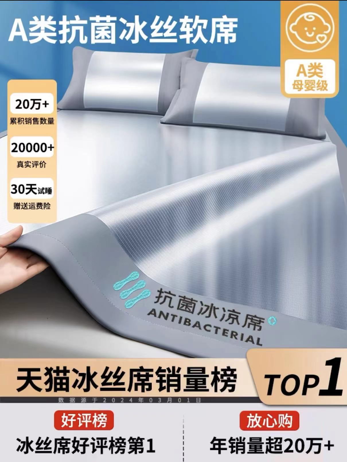【A类母婴级!爆款抗菌冰丝凉席】夏天裸睡母婴级空调席可机洗折叠床笠软席子,轻松折叠,方便收纳不占地。ry
