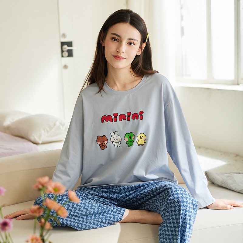 【品牌直发 换季焕新】芬腾布朗熊女士纯棉睡衣春秋季圆领长袖套装可爱休闲可外穿家居服