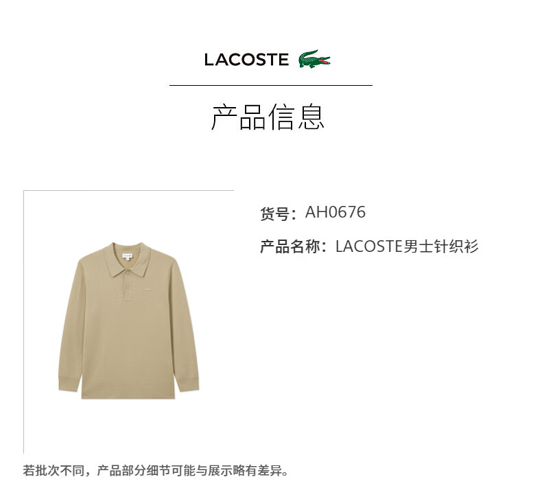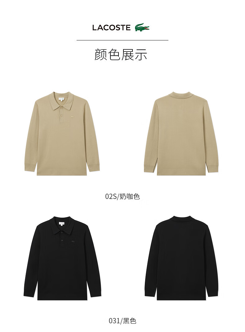 Lacoste法国鳄鱼男装新款时尚简约翻领毛衣AH0676-98