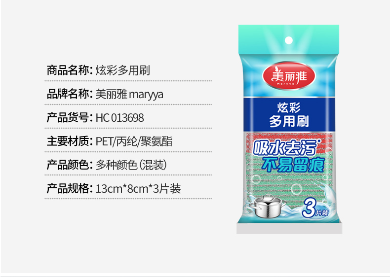 【批发】美丽雅炫彩百洁布3个装