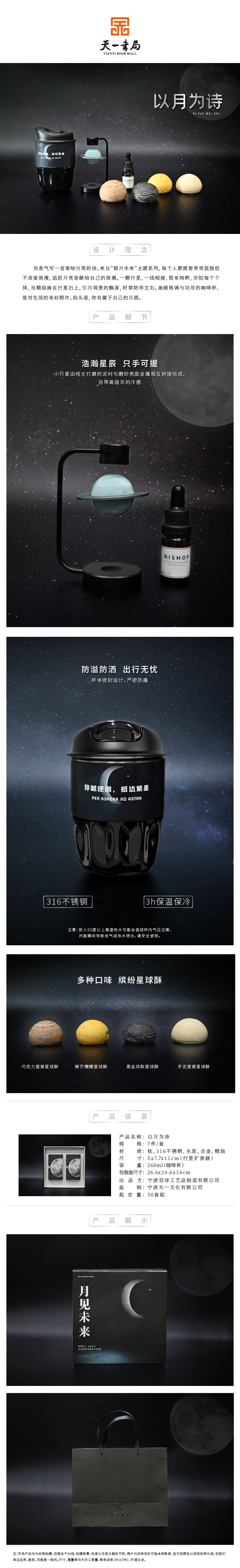 羽诗制造出品 以月为诗行星扩香器咖啡杯月饼礼盒套装